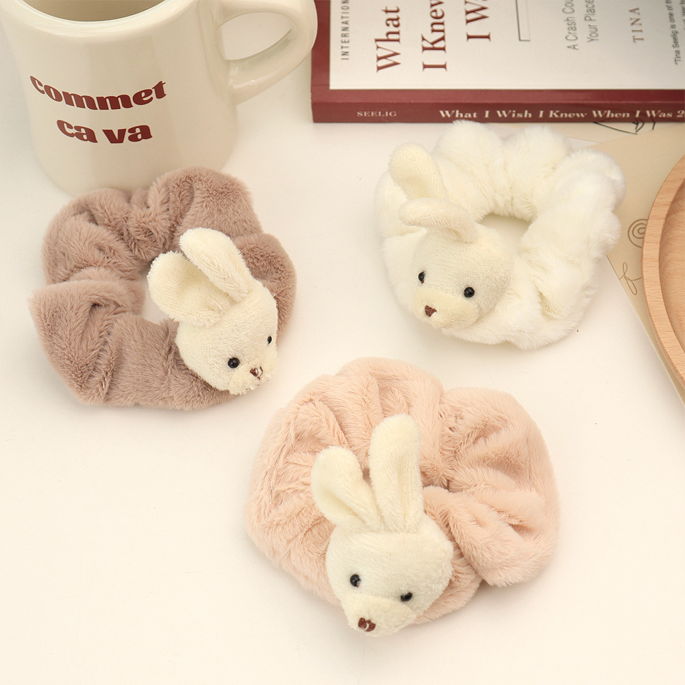 毛绒小熊大肠发圈后脑勺发量多可爱卡通毛绒绒发绳大号卡通毛毛圈