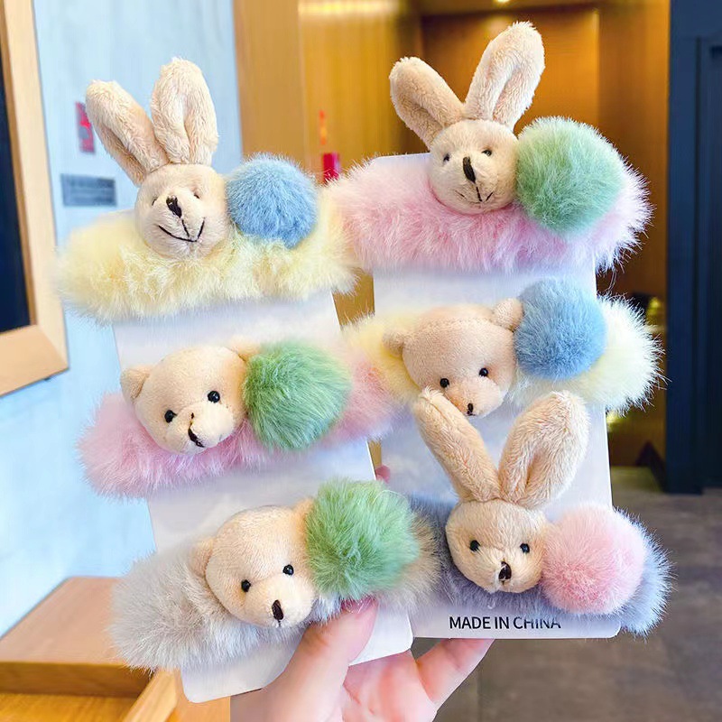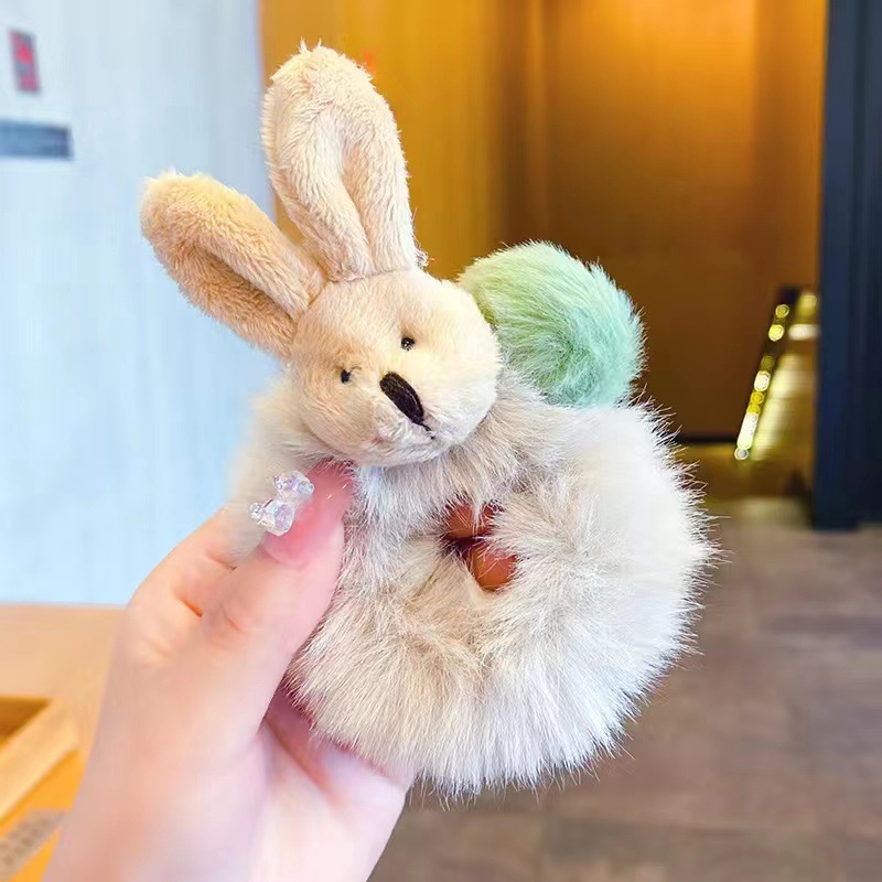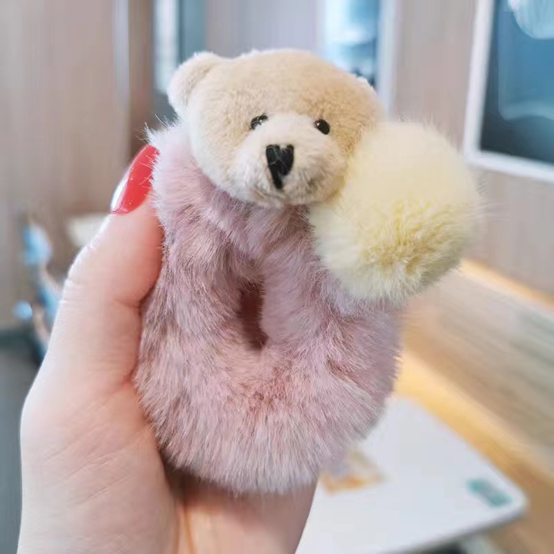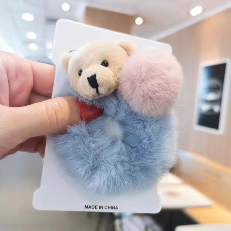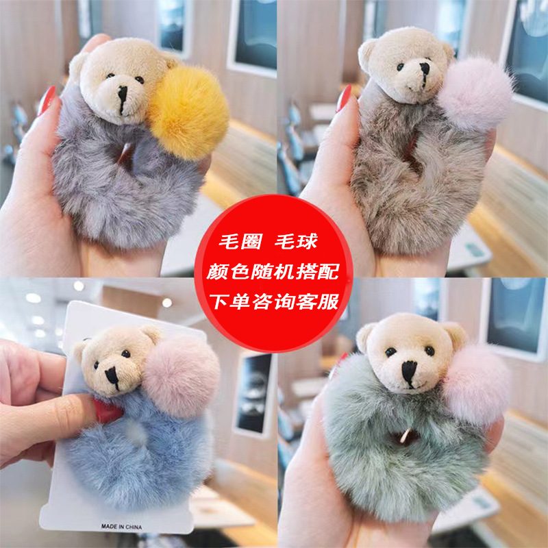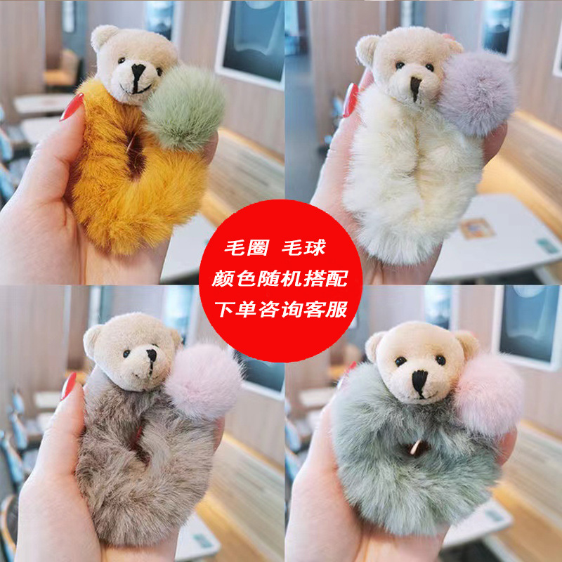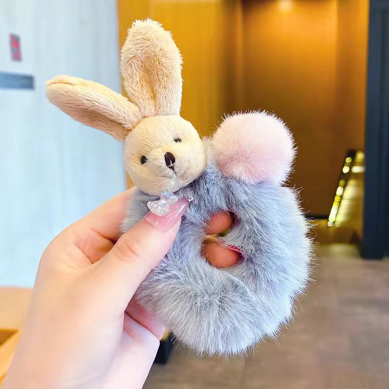 儿童兔耳朵毛绒发圈秋冬小熊扎头发橡皮筋发饰可爱小女孩不伤发绳