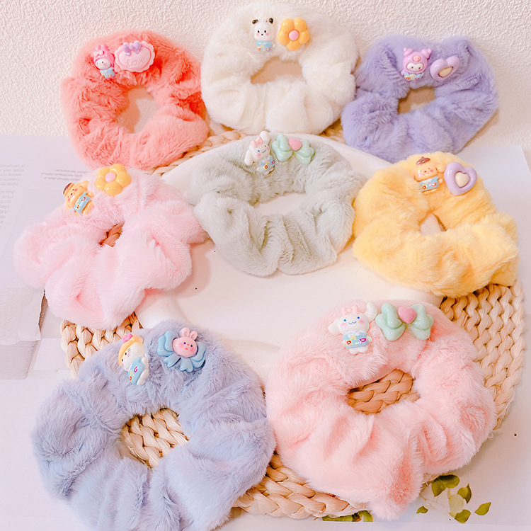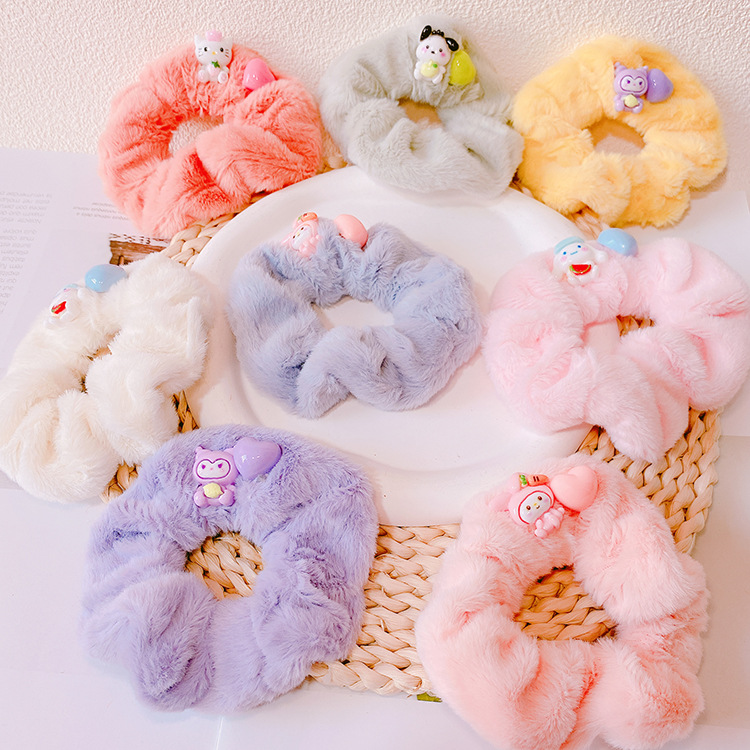 义乌地摊2元店头饰品批发网红三丽鸥毛绒大肠圈发绳发卡头饰