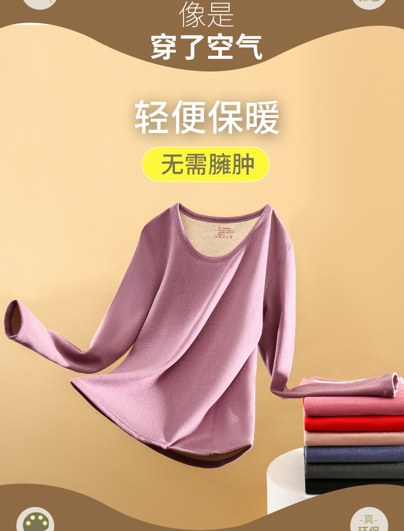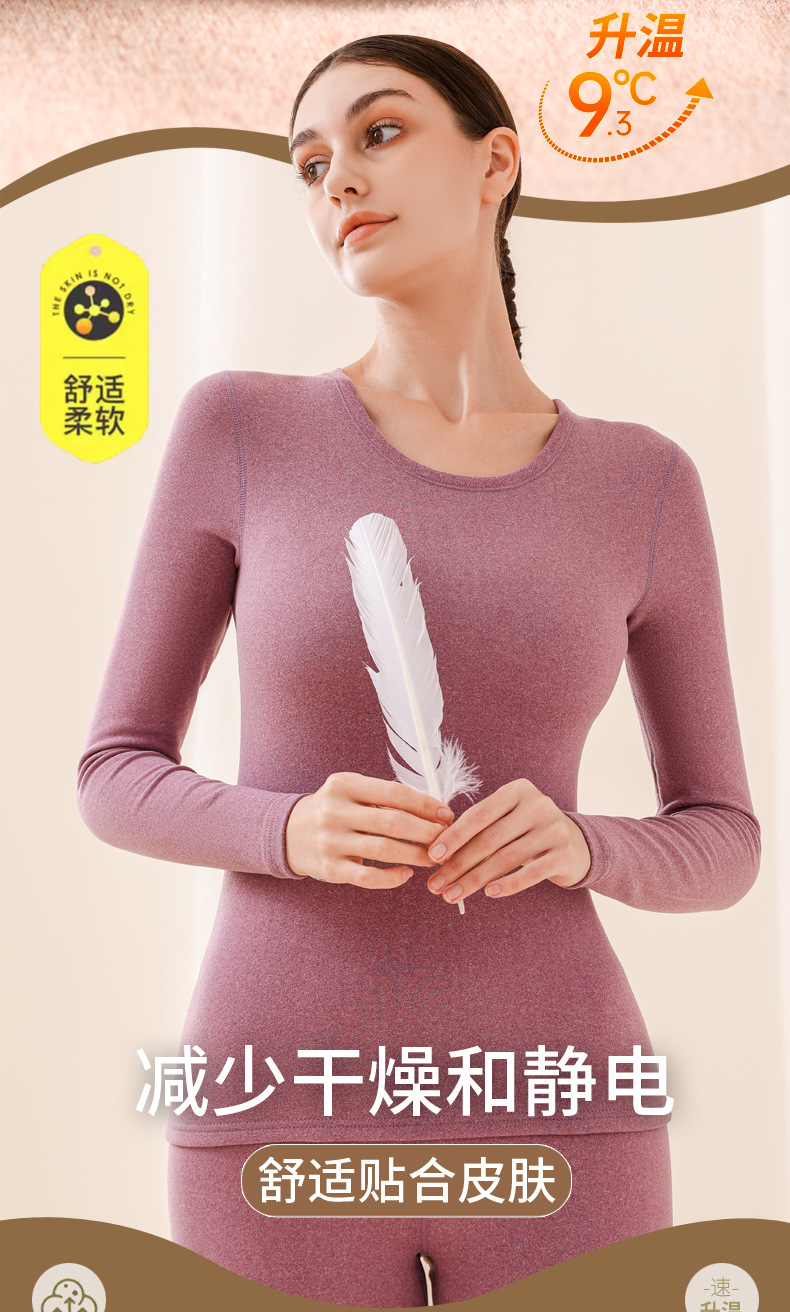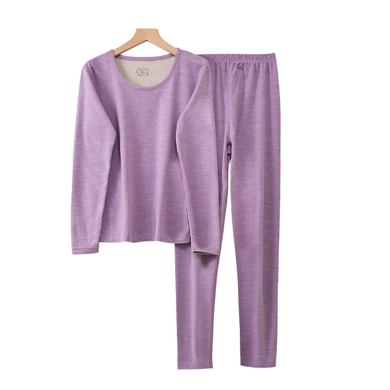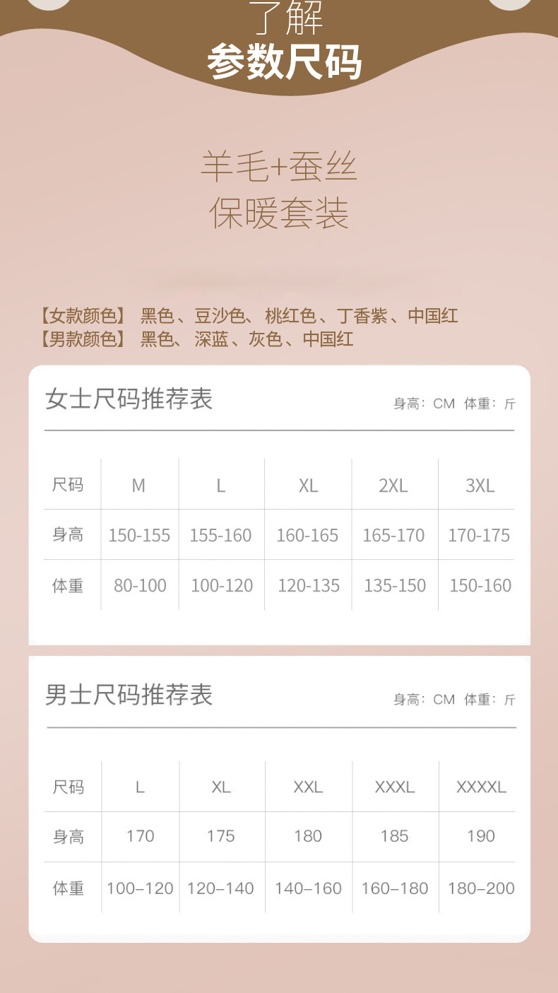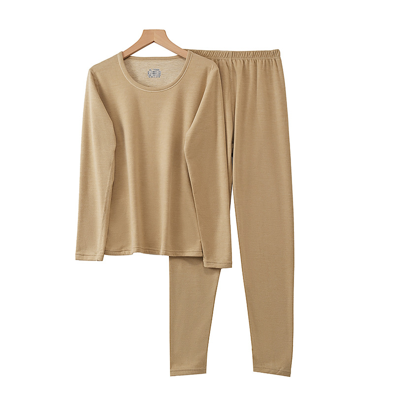 2023新款羊毛蚕丝圆领男士保暖内衣套装女士贴身内穿秋衣秋裤打底
