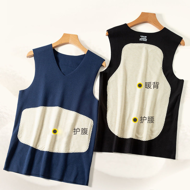 男士德绒无痕贴片保暖背心双面绒打底衫冬季加绒女士护肚护背上衣