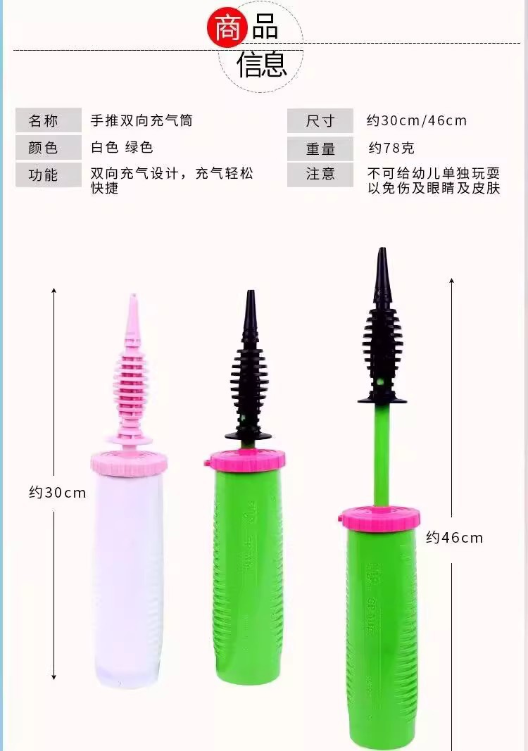 大号手推打气筒手动粉色圆形乳胶气球 铝膜长条波波球汽球充气泵