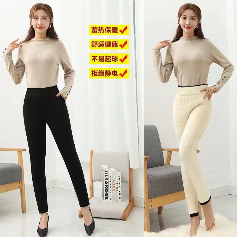 加绒加厚棉裤女冬季新款高腰修身兔毛护膝保暖裤外穿打底裤小黑裤