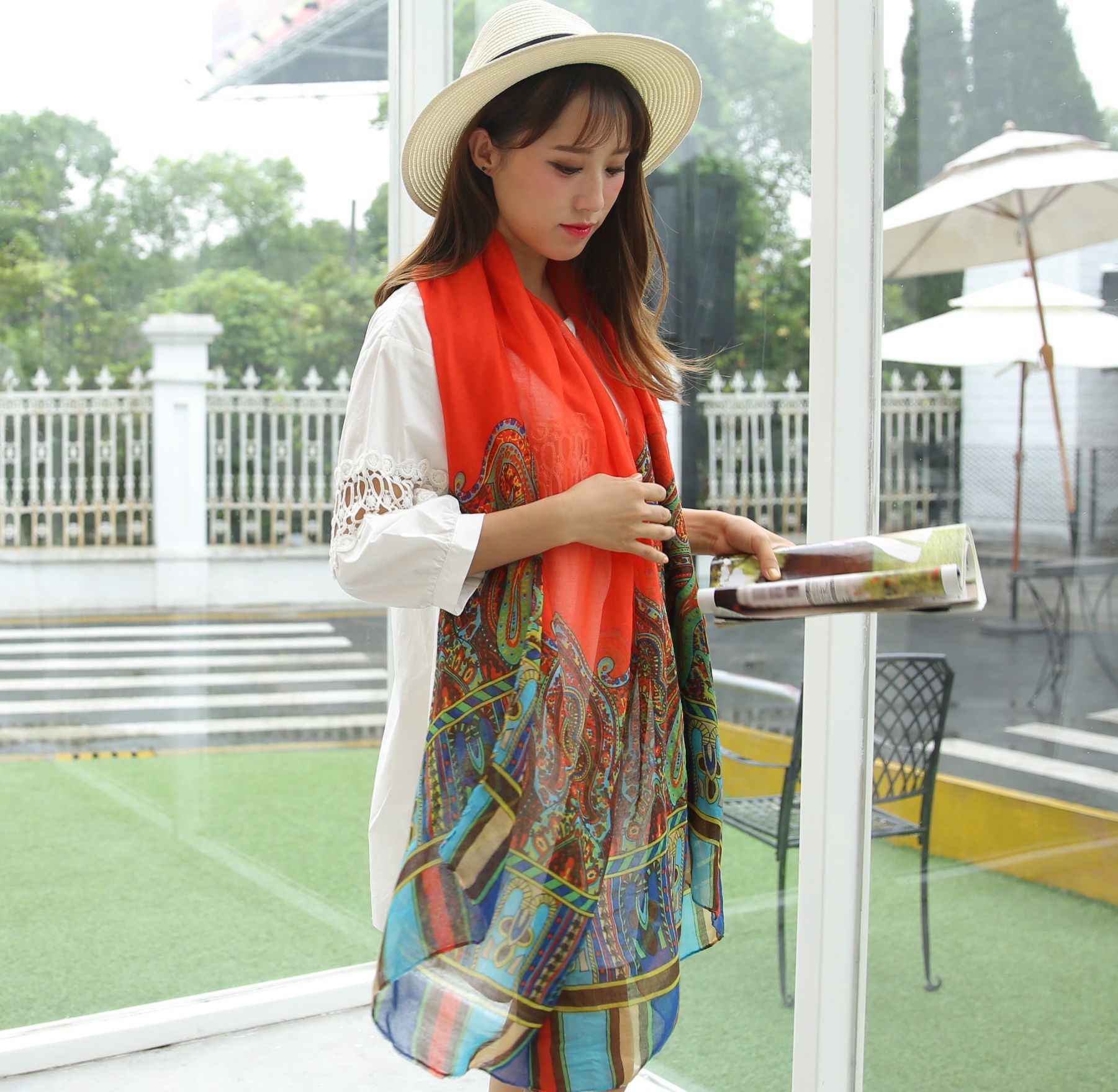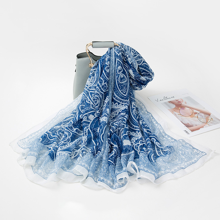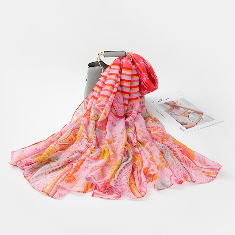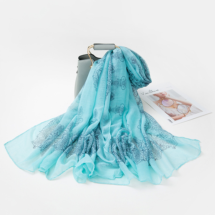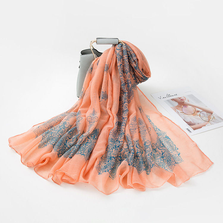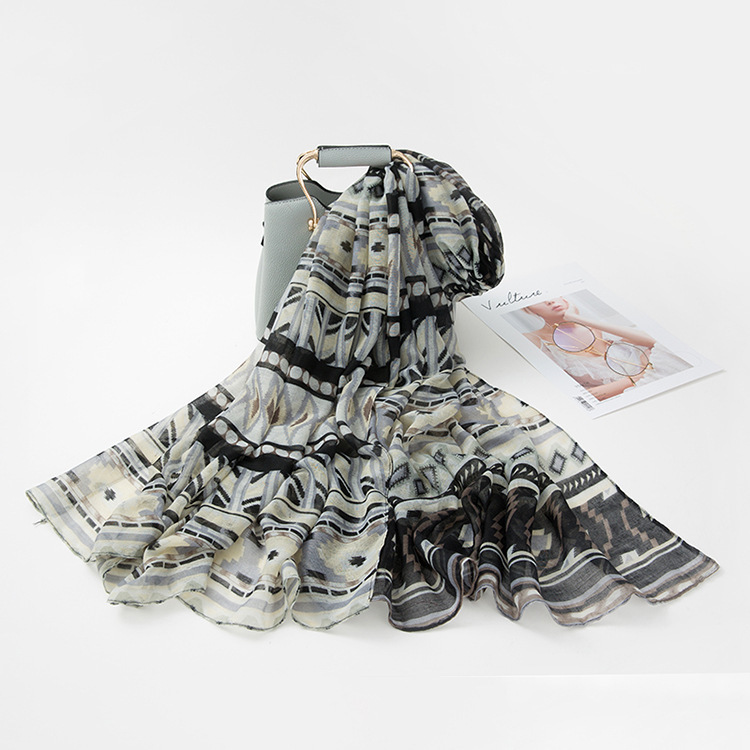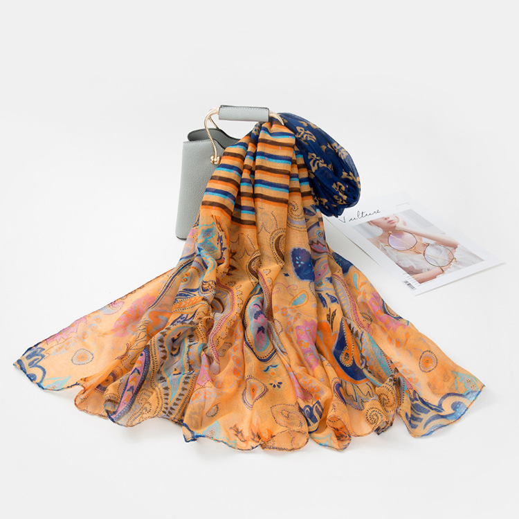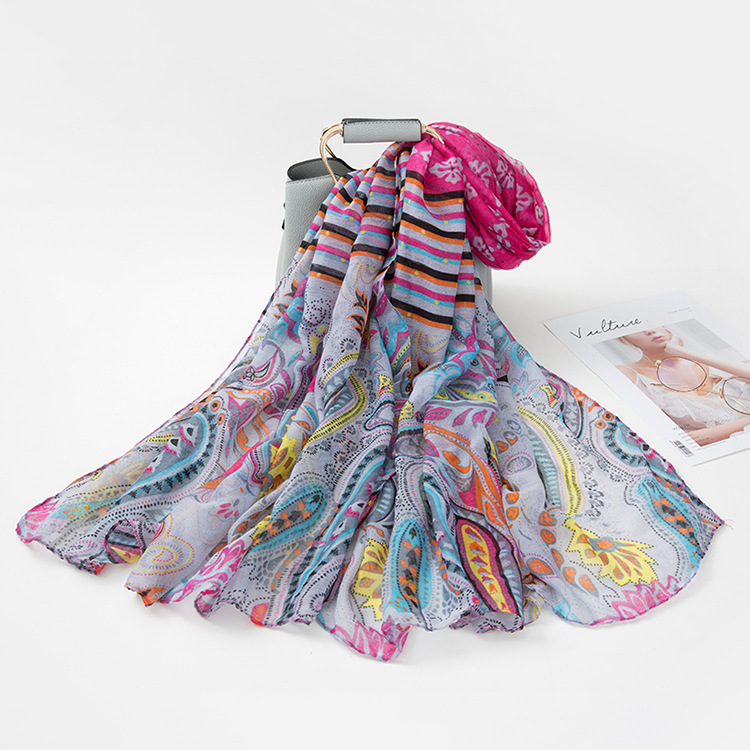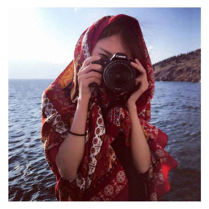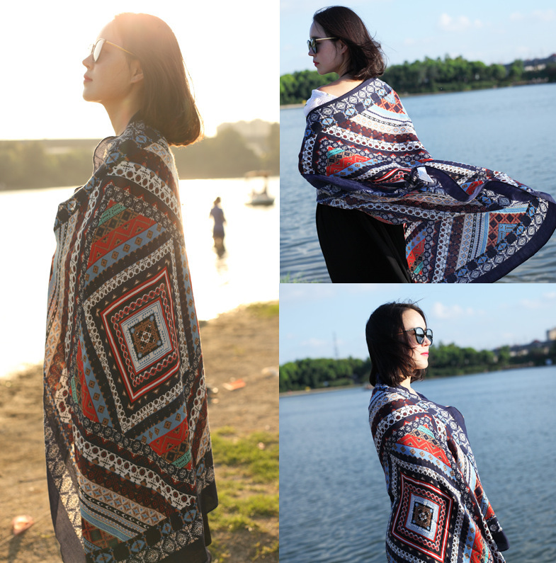 民族风围巾女海边旅游沙滩巾印花丝巾女防晒披肩棉麻纱巾围脖批发
