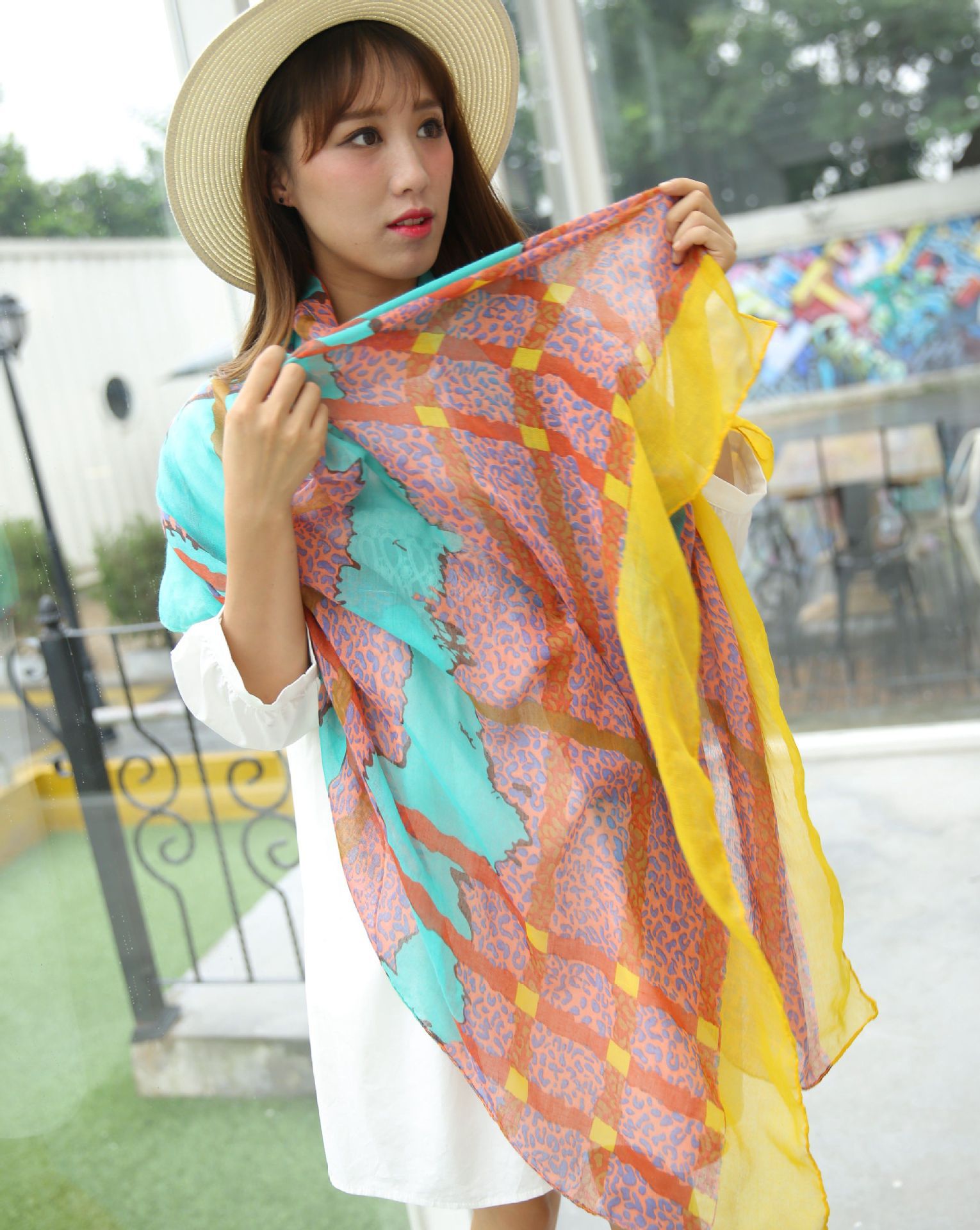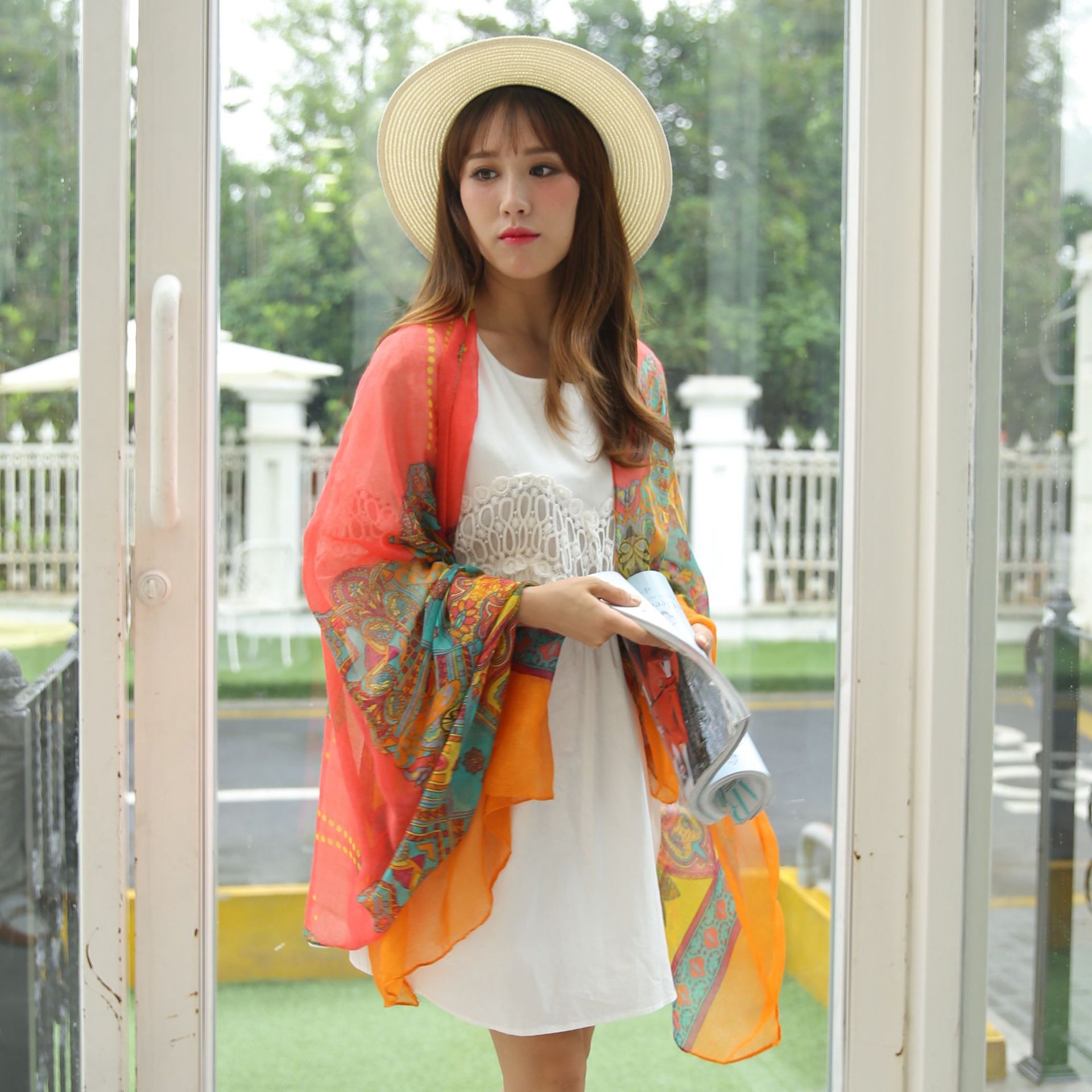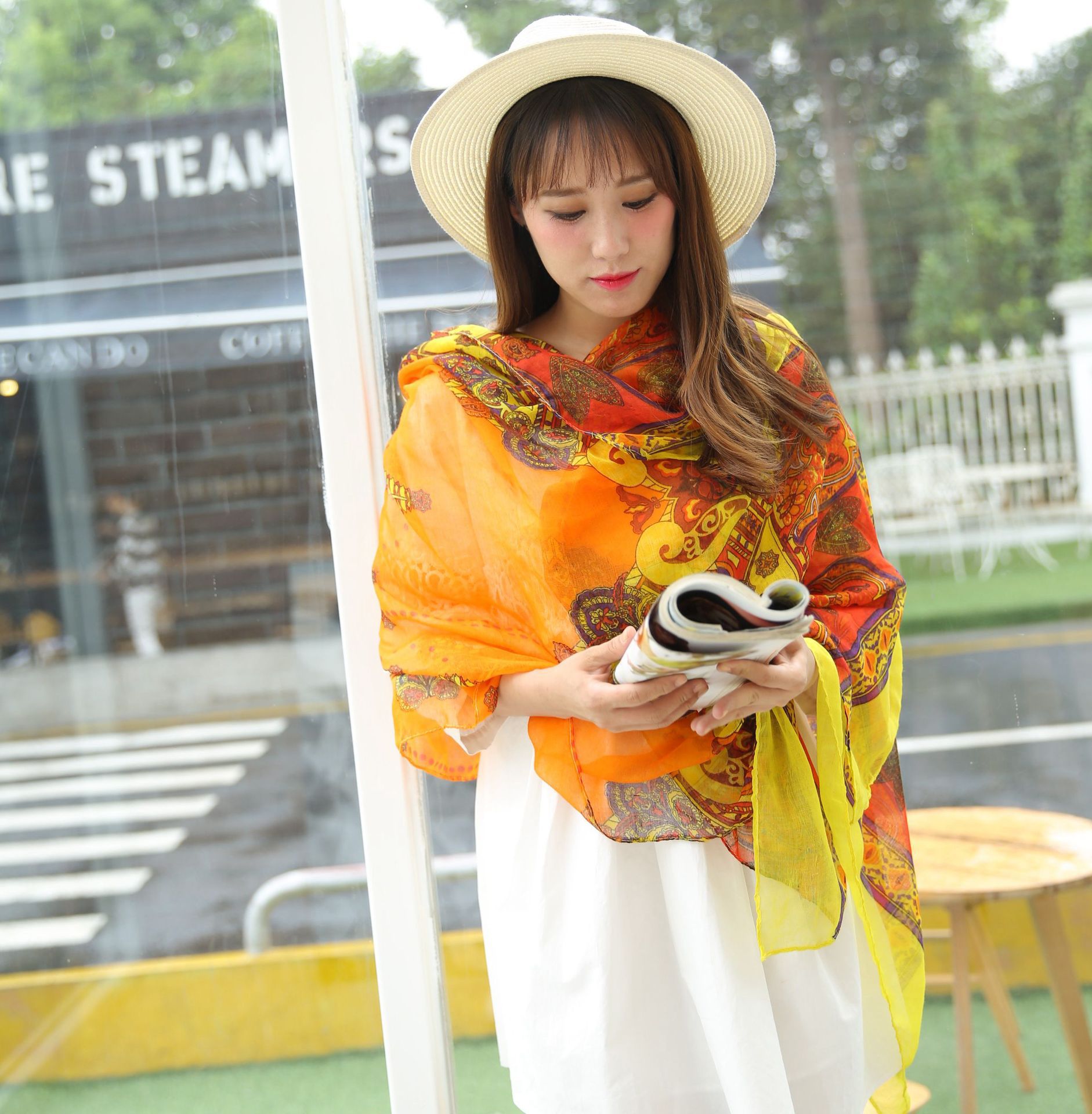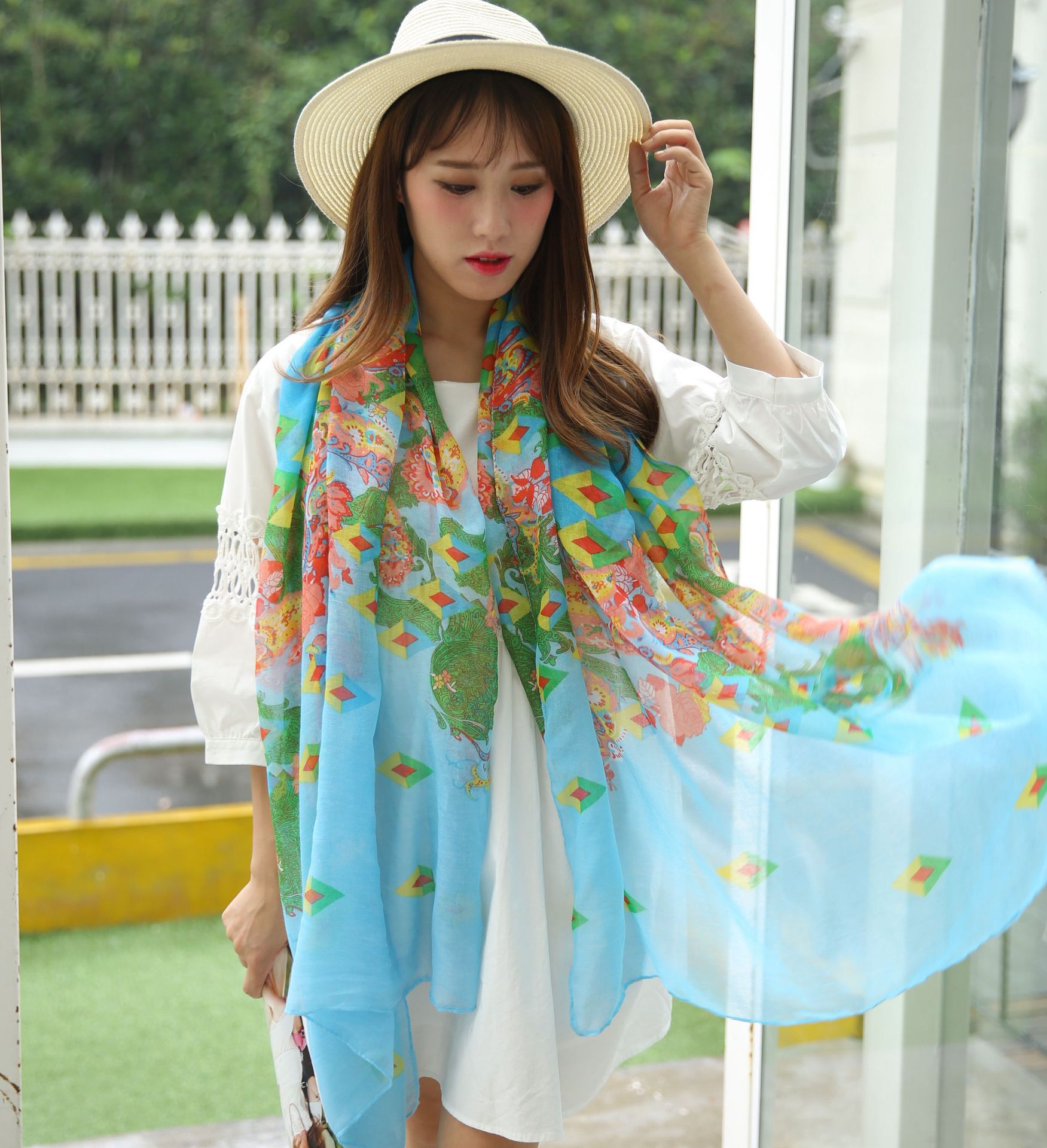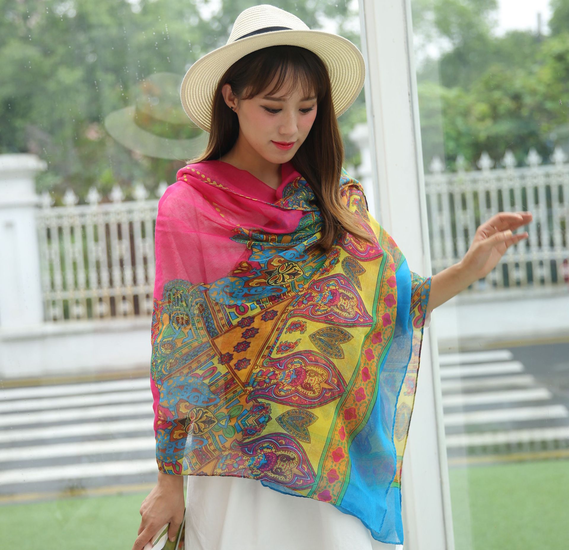 民族风围巾女海边旅游沙滩巾印花丝巾女防晒披肩棉麻纱巾围脖批发
