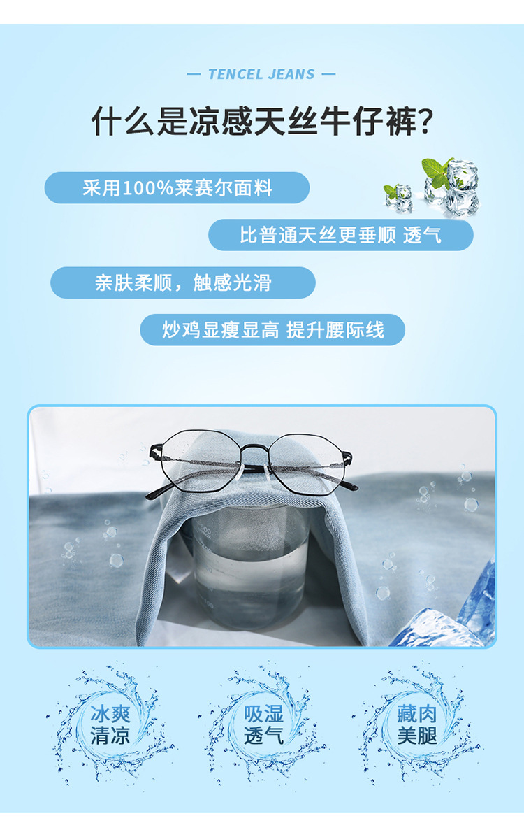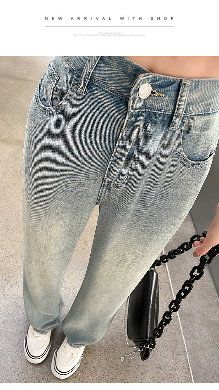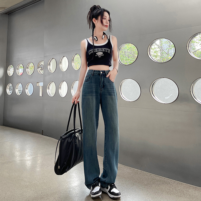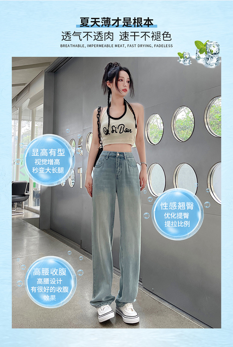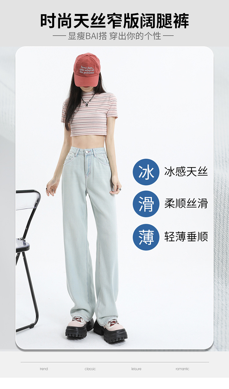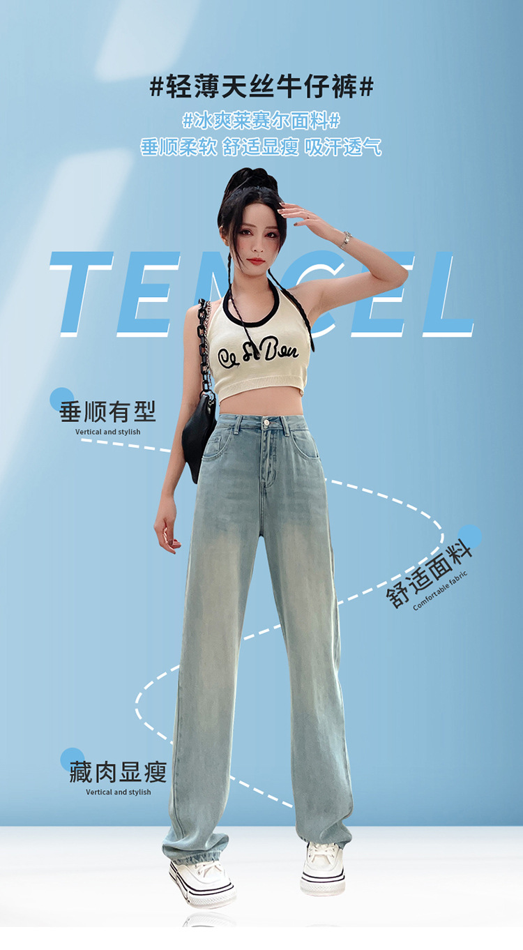 天丝牛仔裤女夏季薄款莱赛尔高腰宽松冰丝垂感阔腿时尚百搭直筒裤