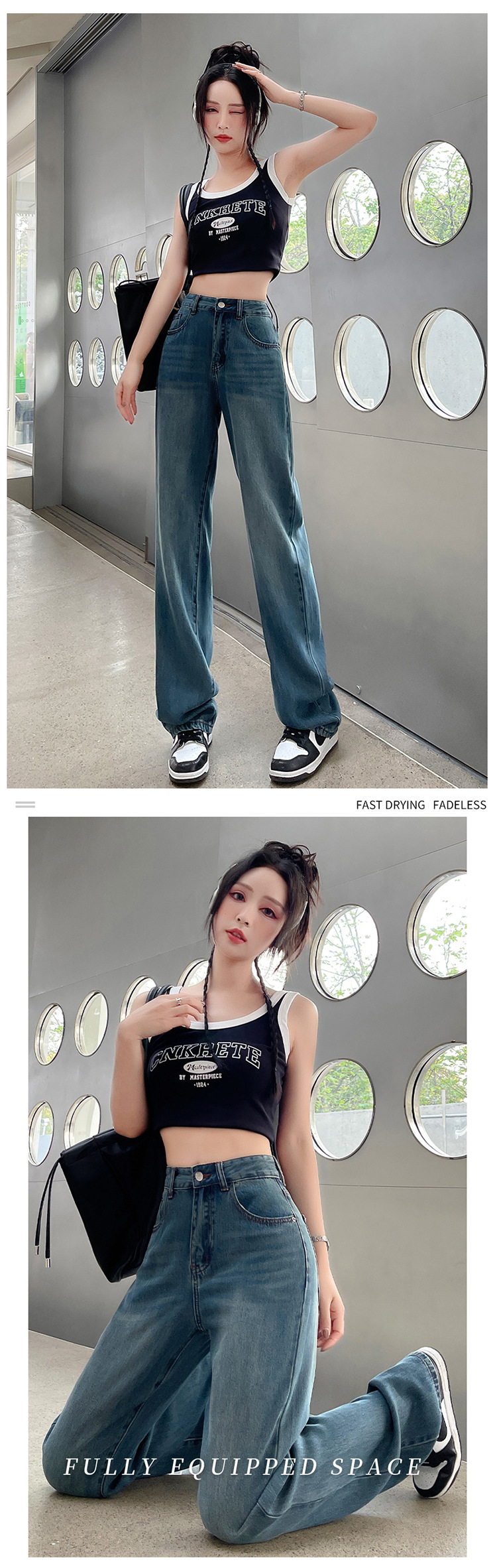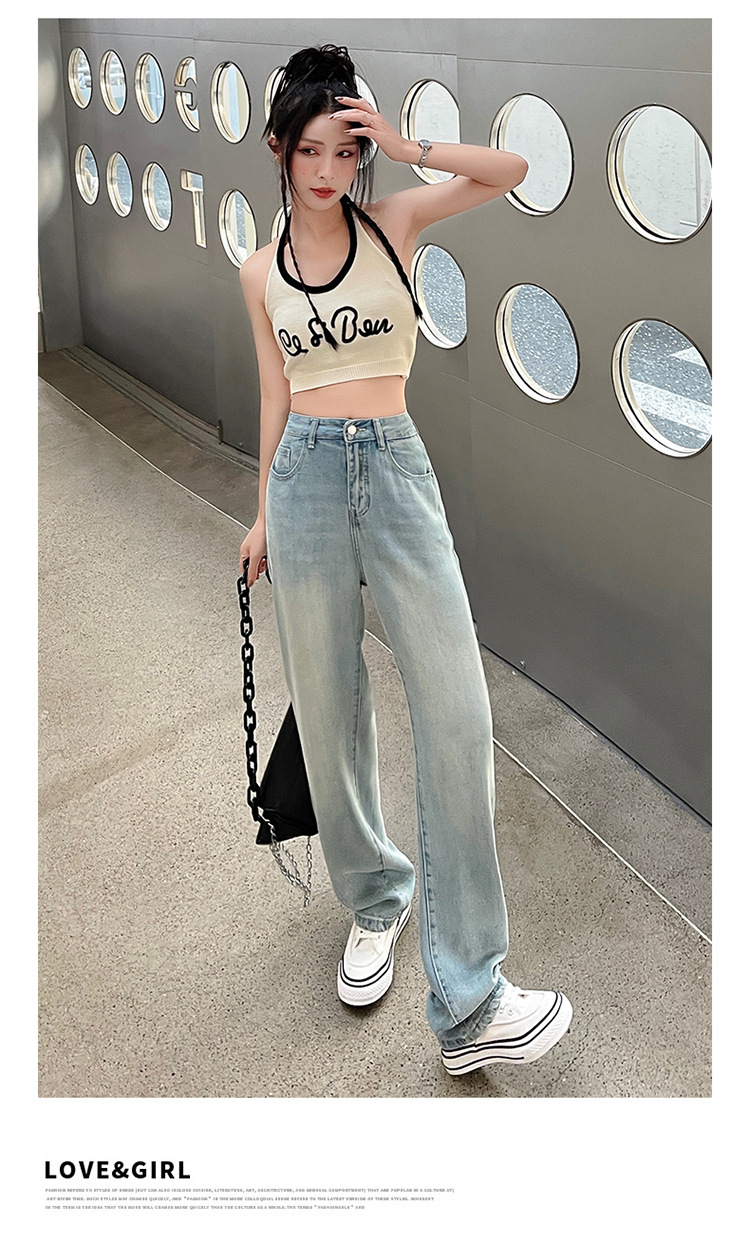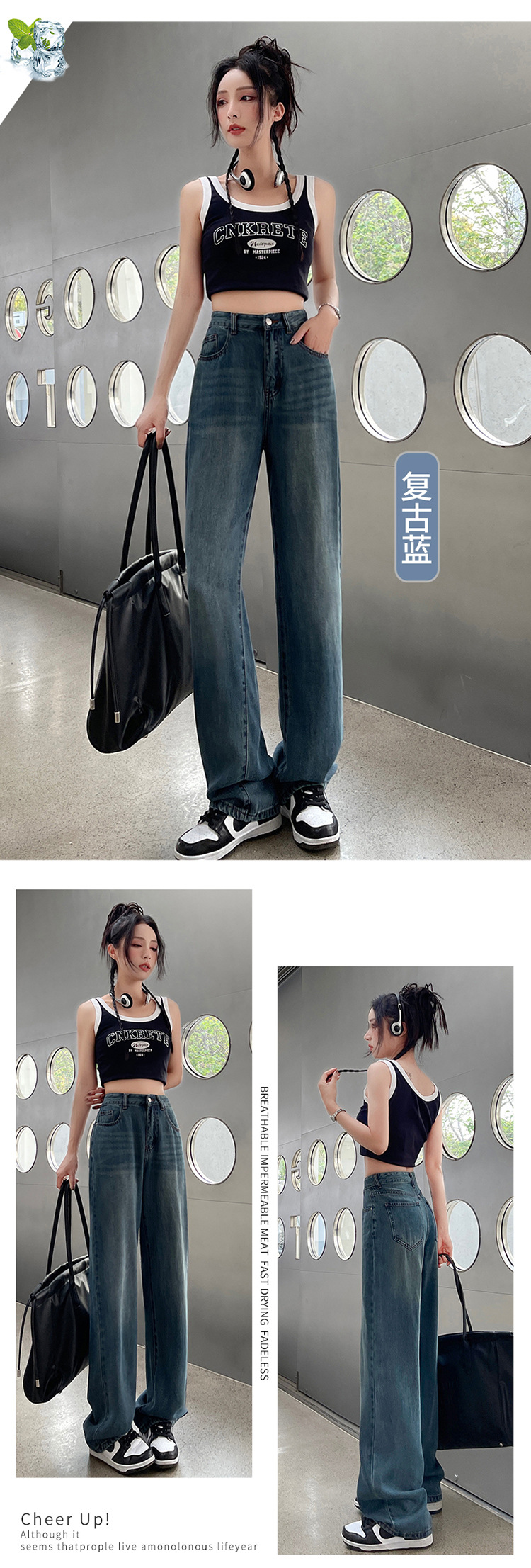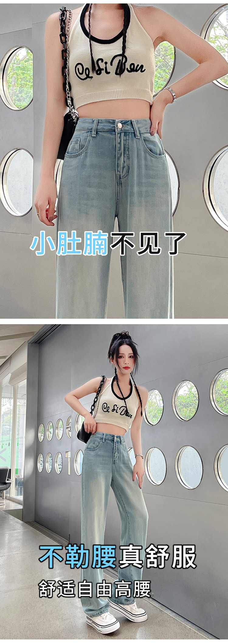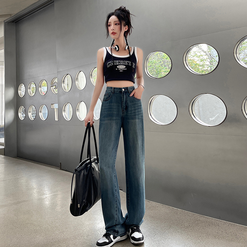 天丝牛仔裤女夏季薄款莱赛尔高腰宽松冰丝垂感阔腿时尚百搭直筒裤