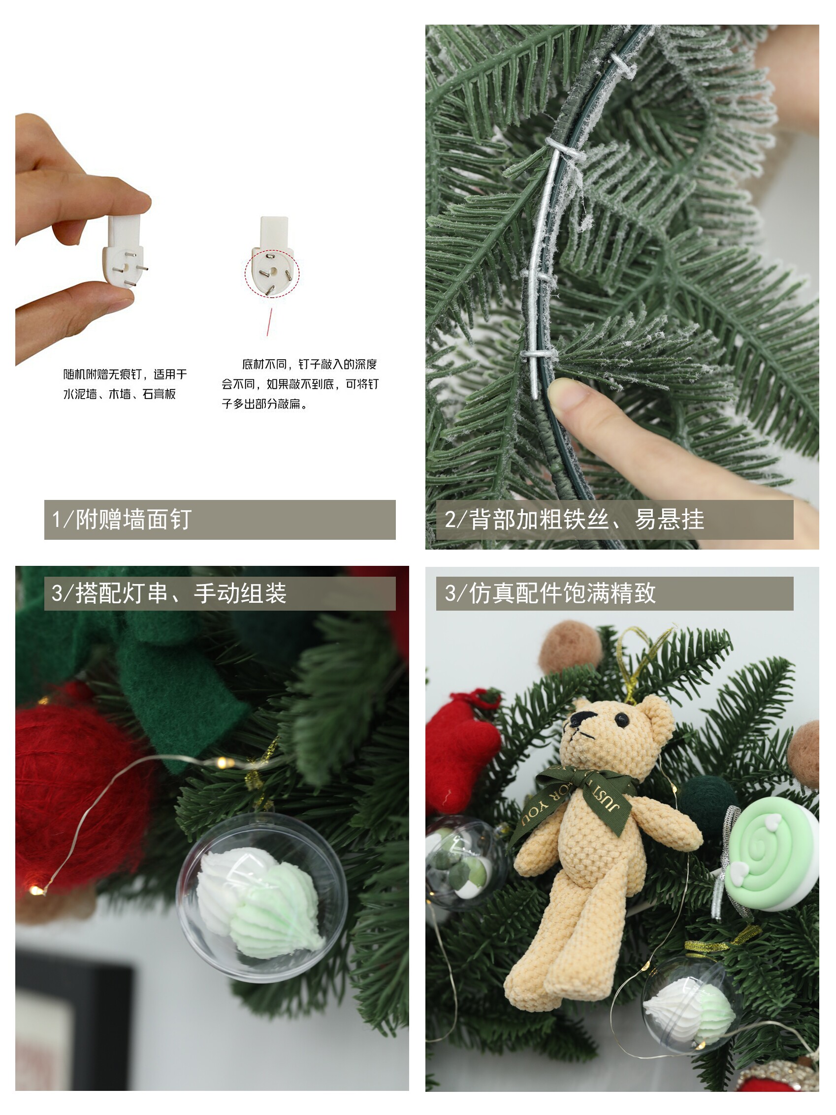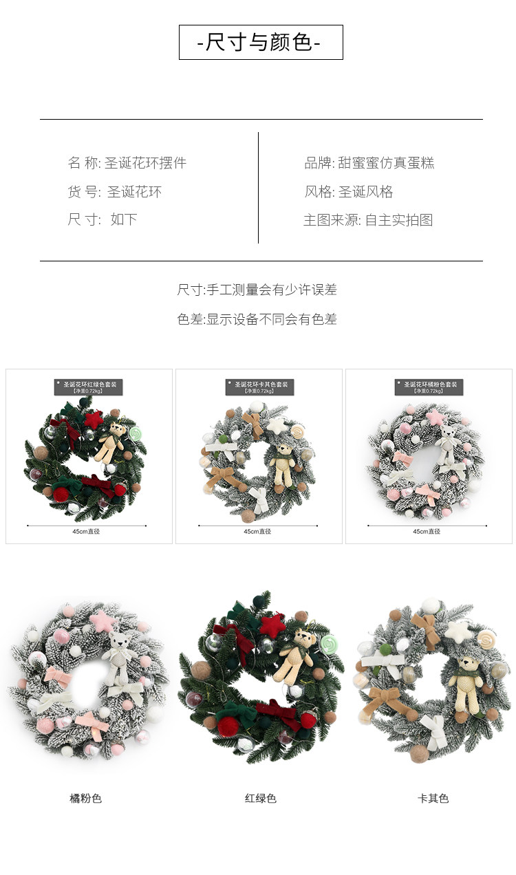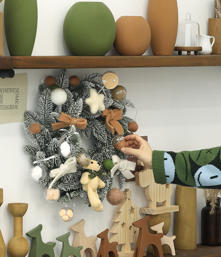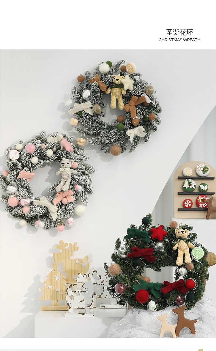 圣诞树场景布置摆件创意橱窗挂件 圣诞节装饰品花环 藤条藤圈门挂