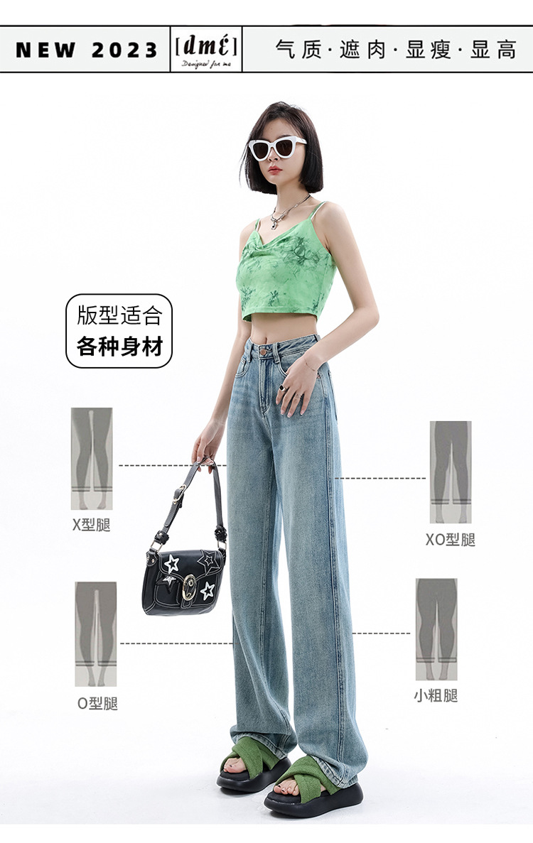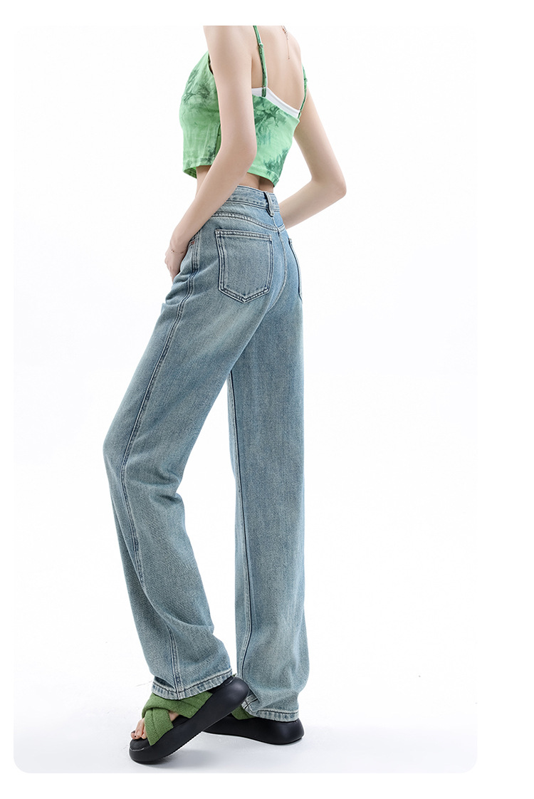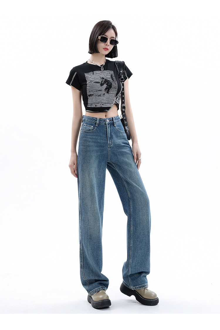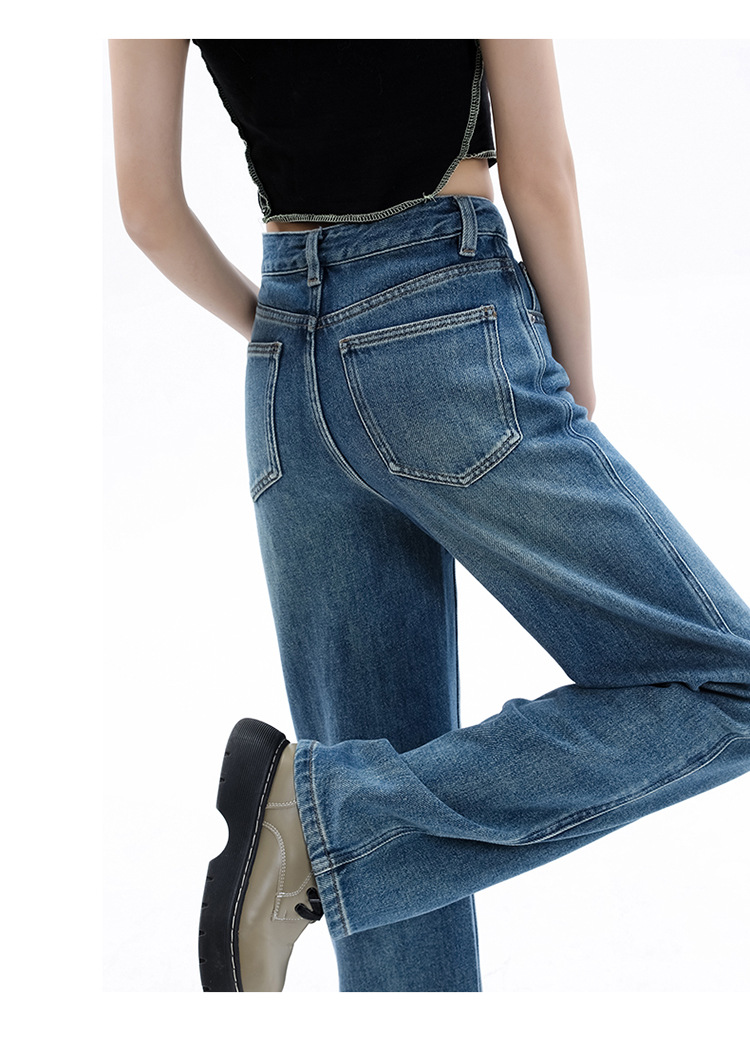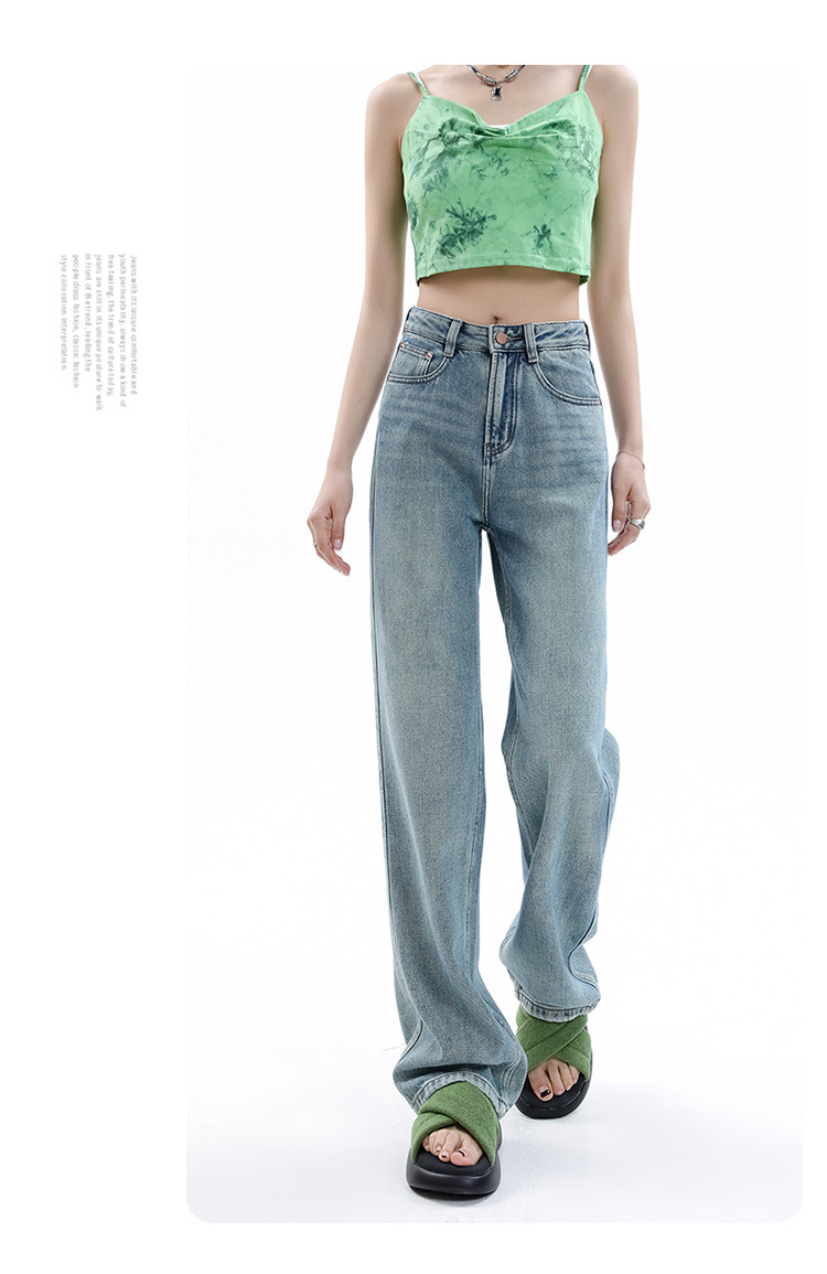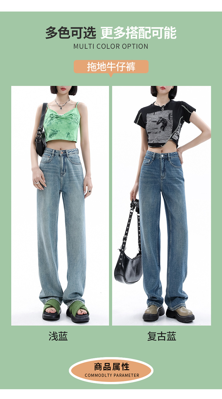 窄版阔腿牛仔裤女秋季新款宽松高腰垂感百搭拖地裤显瘦直筒长裤子