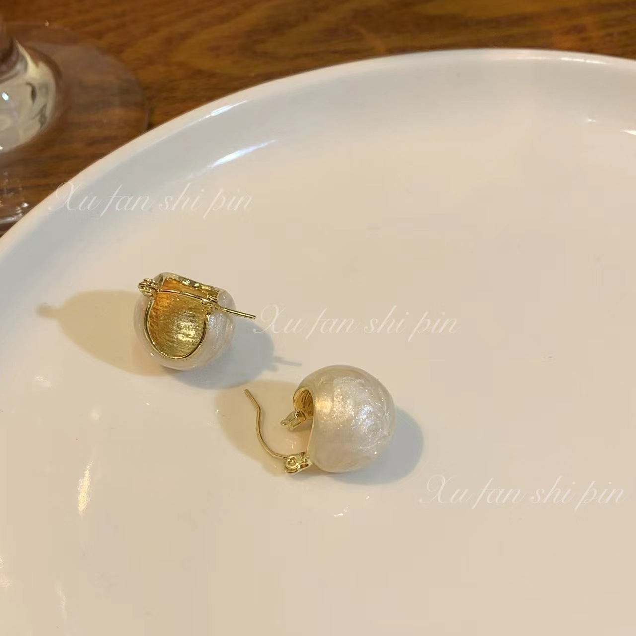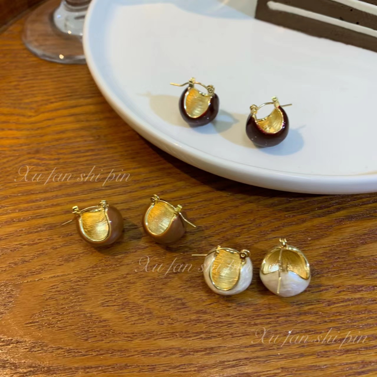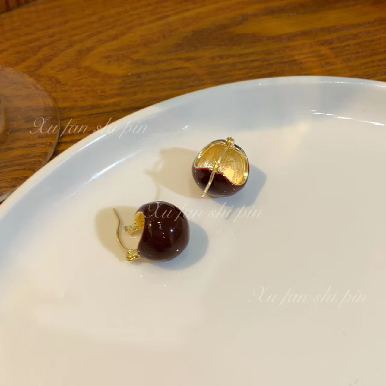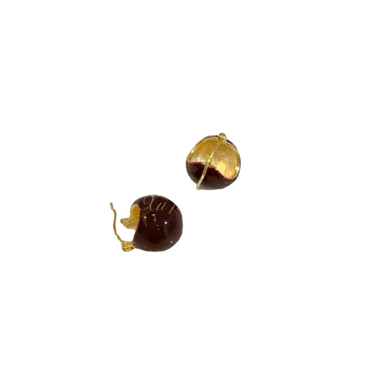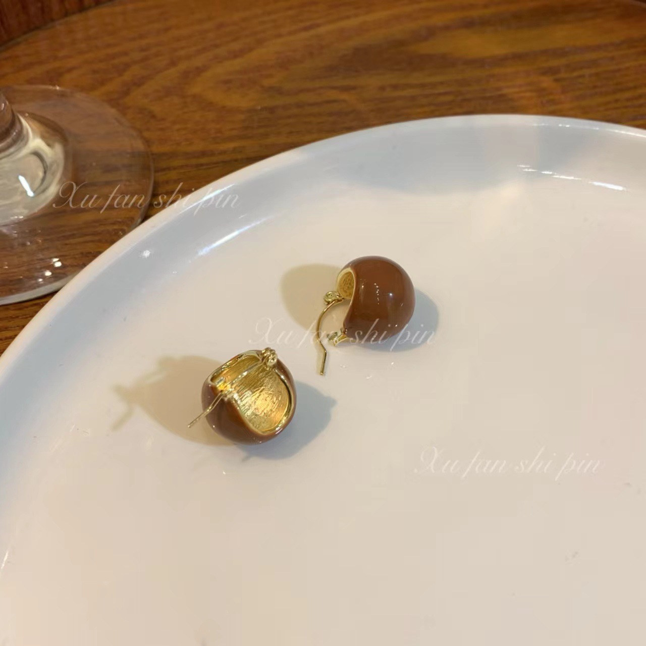 复古港风滴油圆球耳环女 秋冬轻奢棕色耳扣2022年新款潮耳饰耳钉
