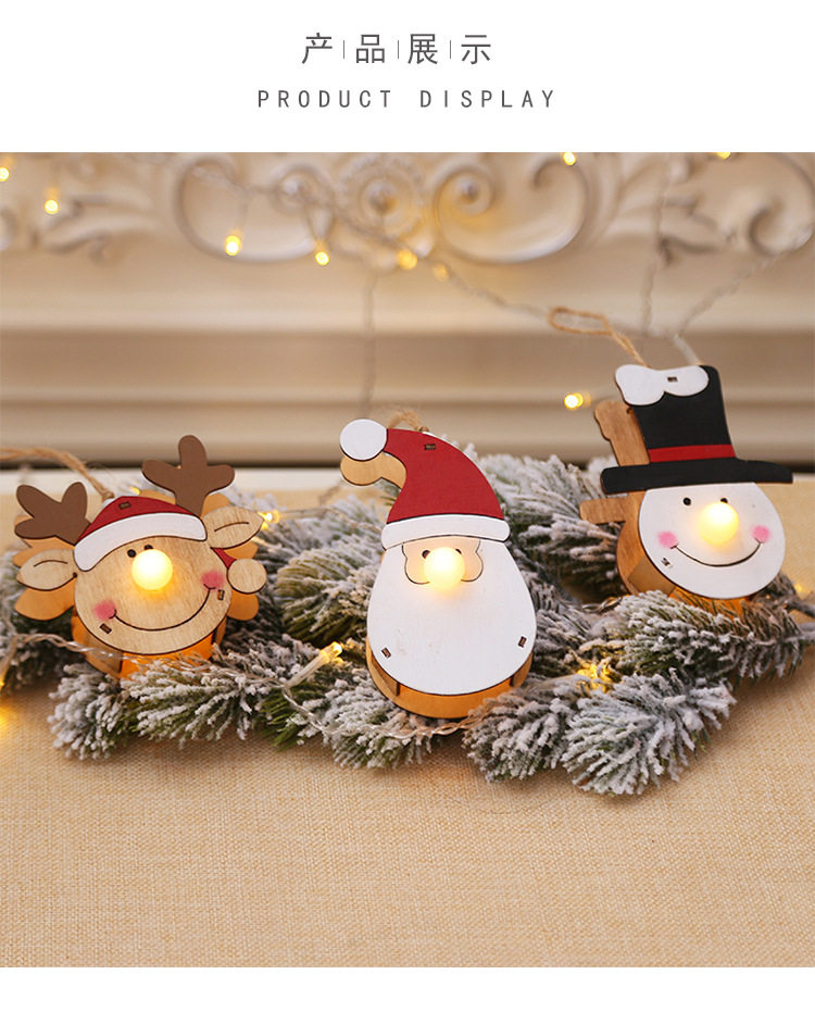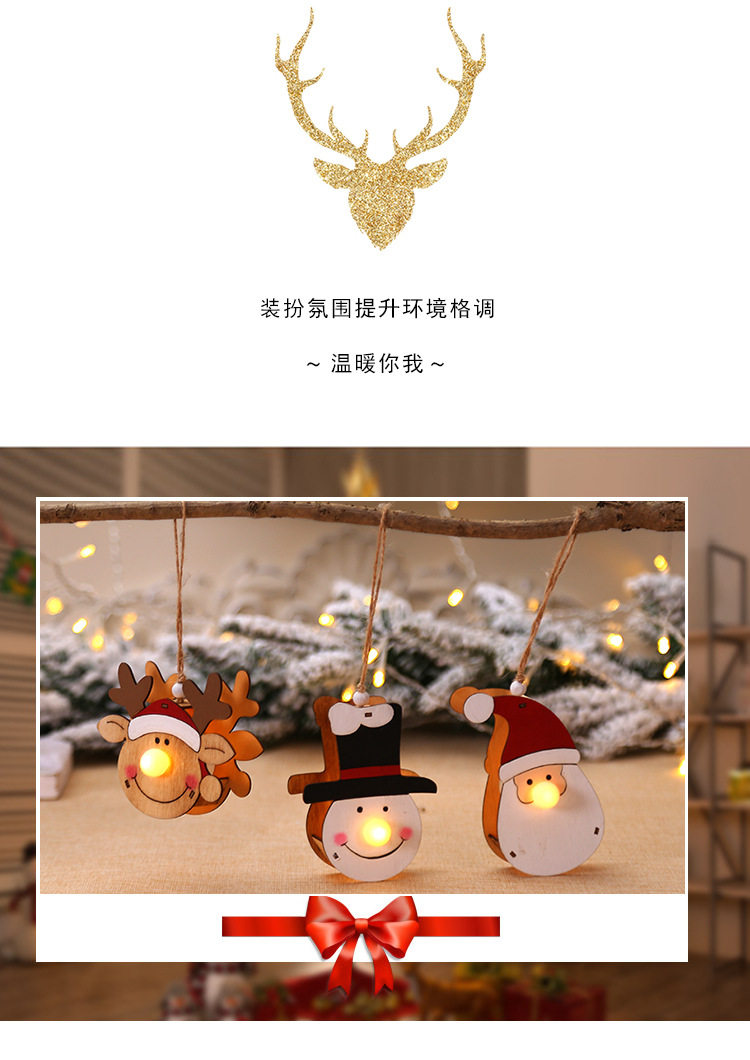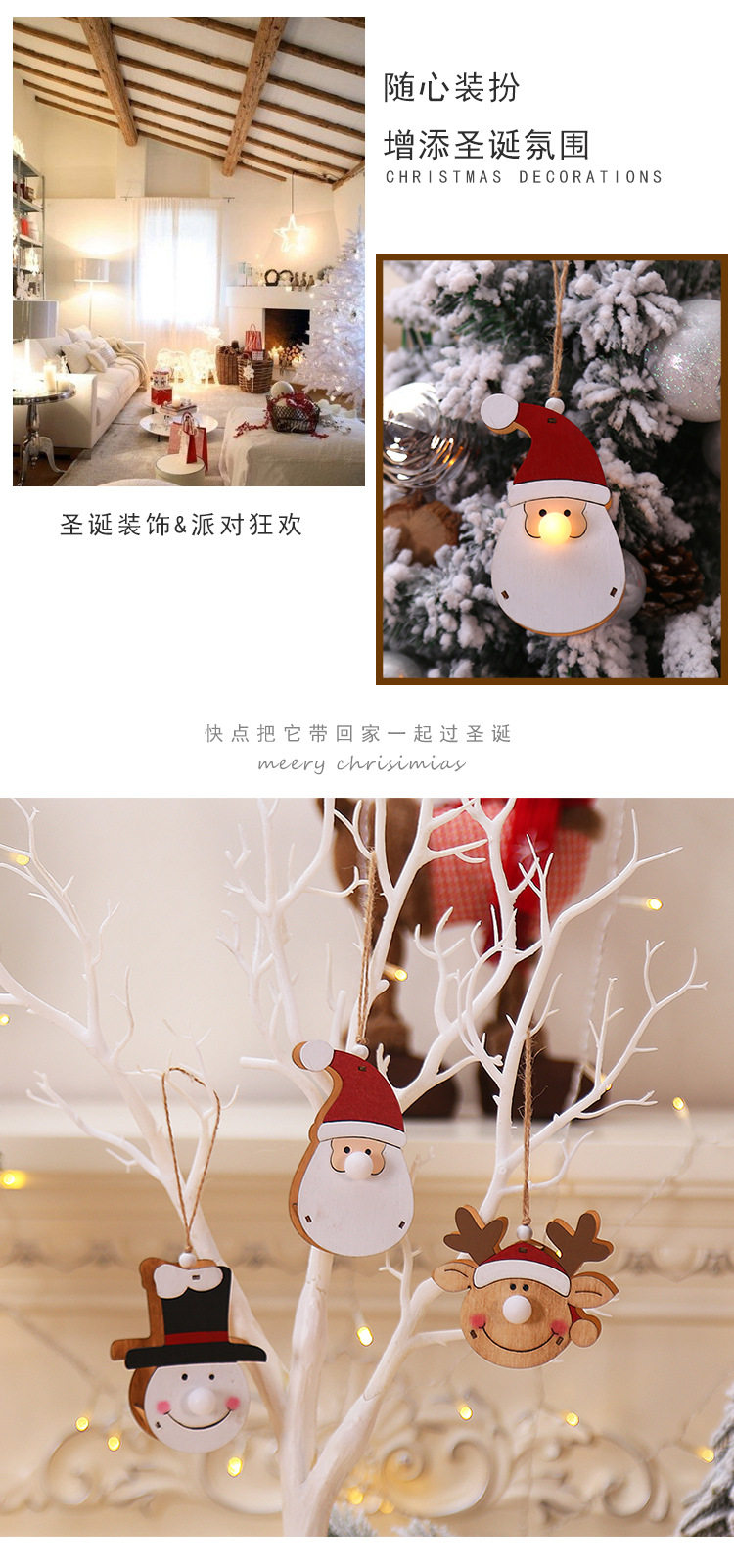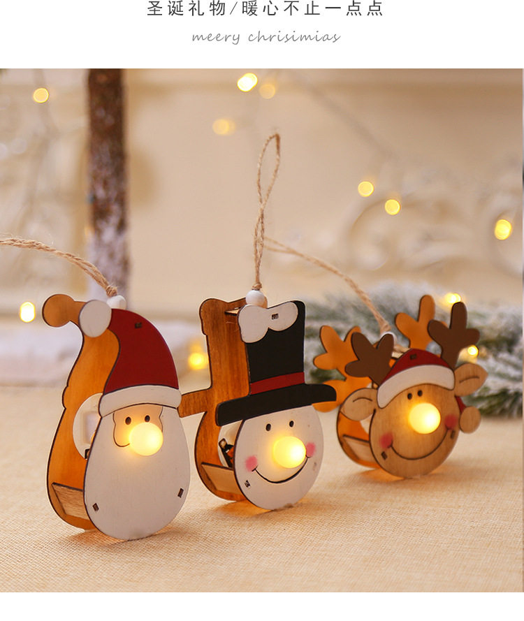 圣诞节装饰用品新款发光木质公仔挂件圣诞树小挂饰品节日布置装扮