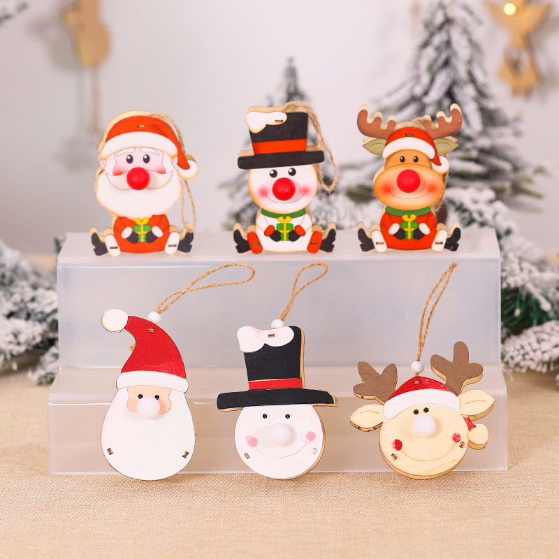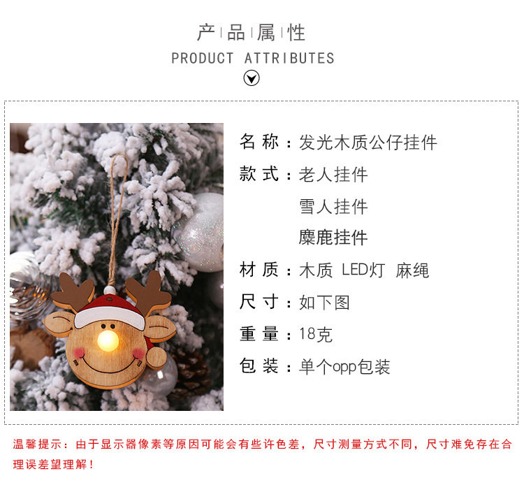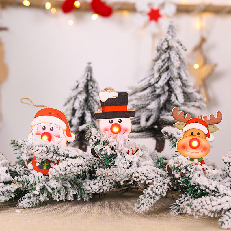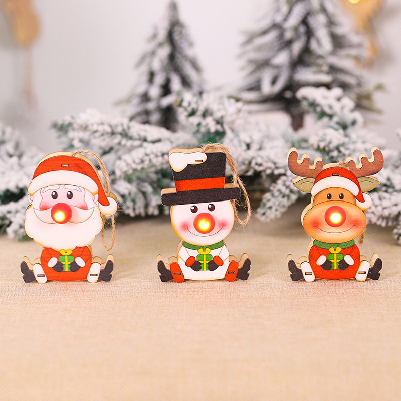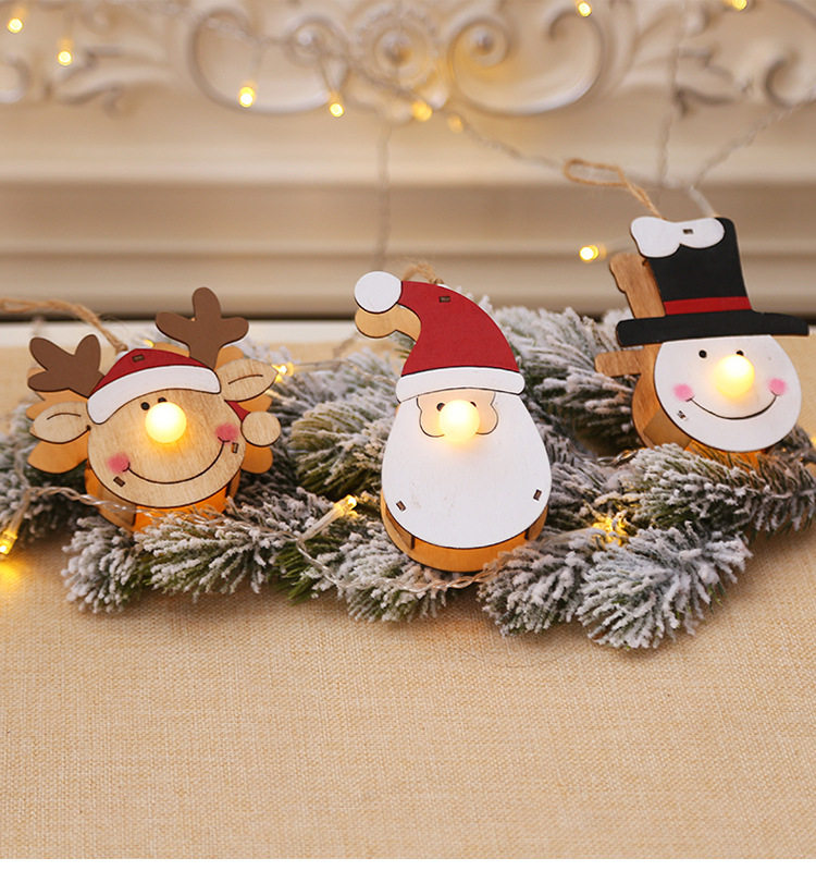 圣诞节装饰用品新款发光木质公仔挂件圣诞树小挂饰品节日布置装扮
