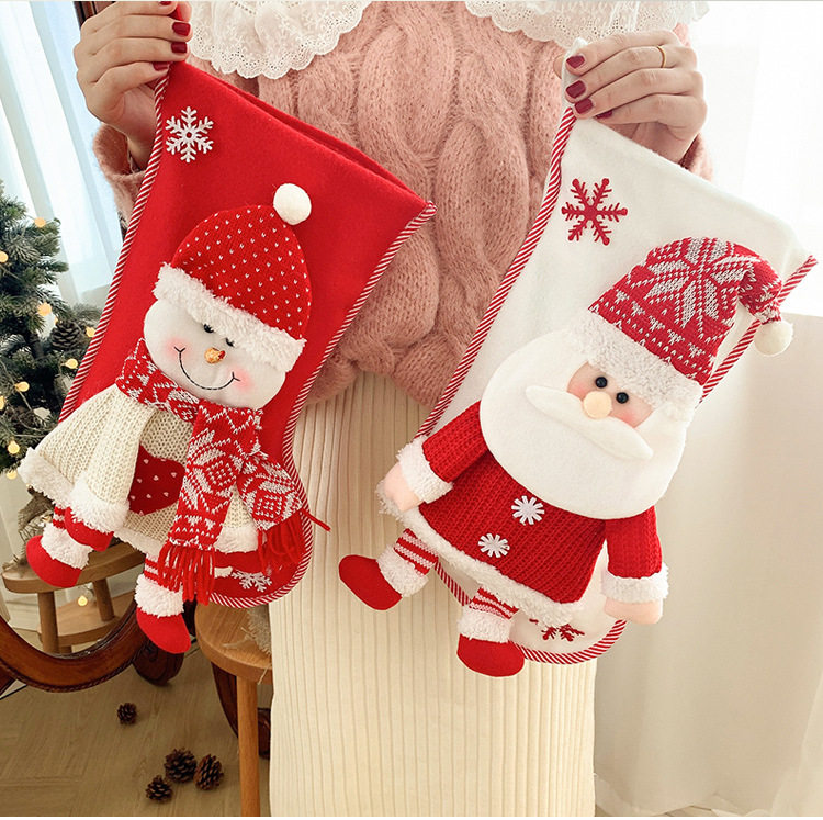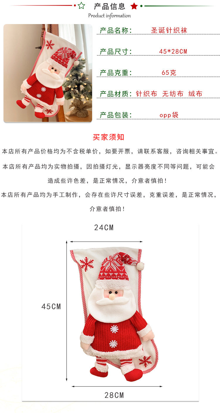 新款圣诞袜圣诞节装饰品针织立体老人雪人礼物袋圣诞树装饰糖果袋