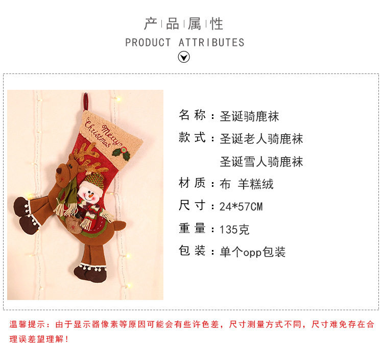 圣诞新款圣诞袜子礼物袋圣诞节装饰布置用品圣诞骑鹿袜礼品糖果袜