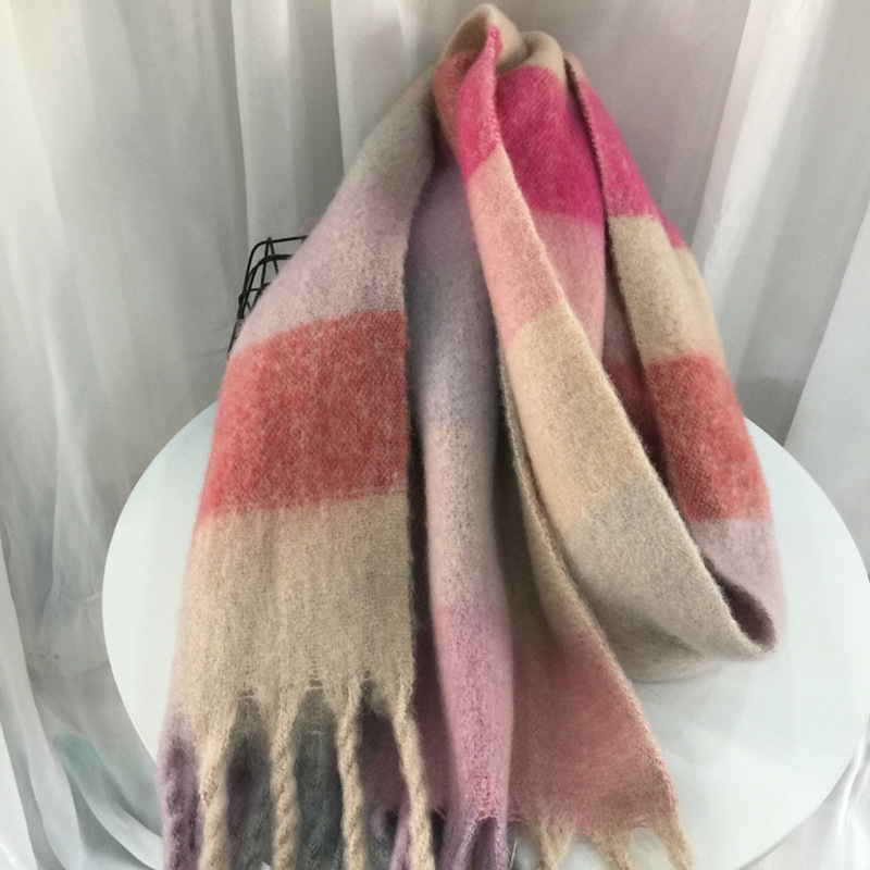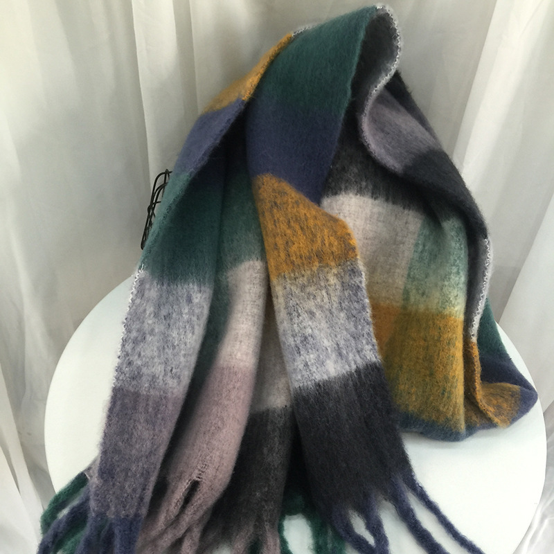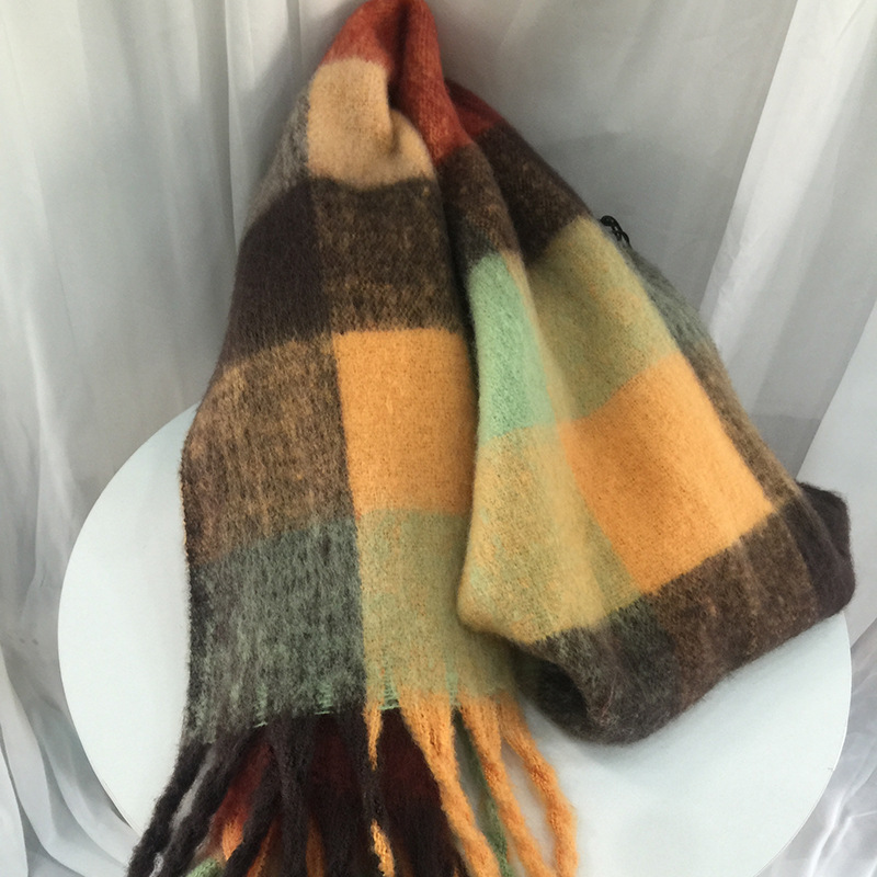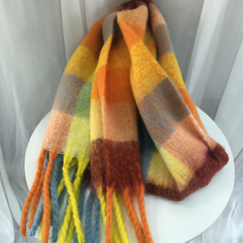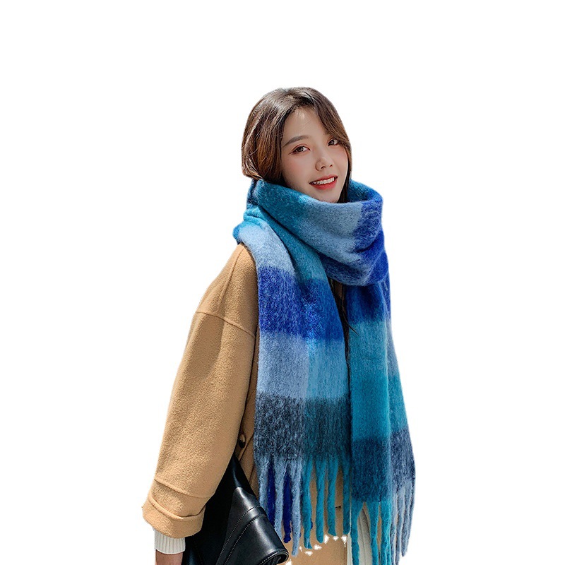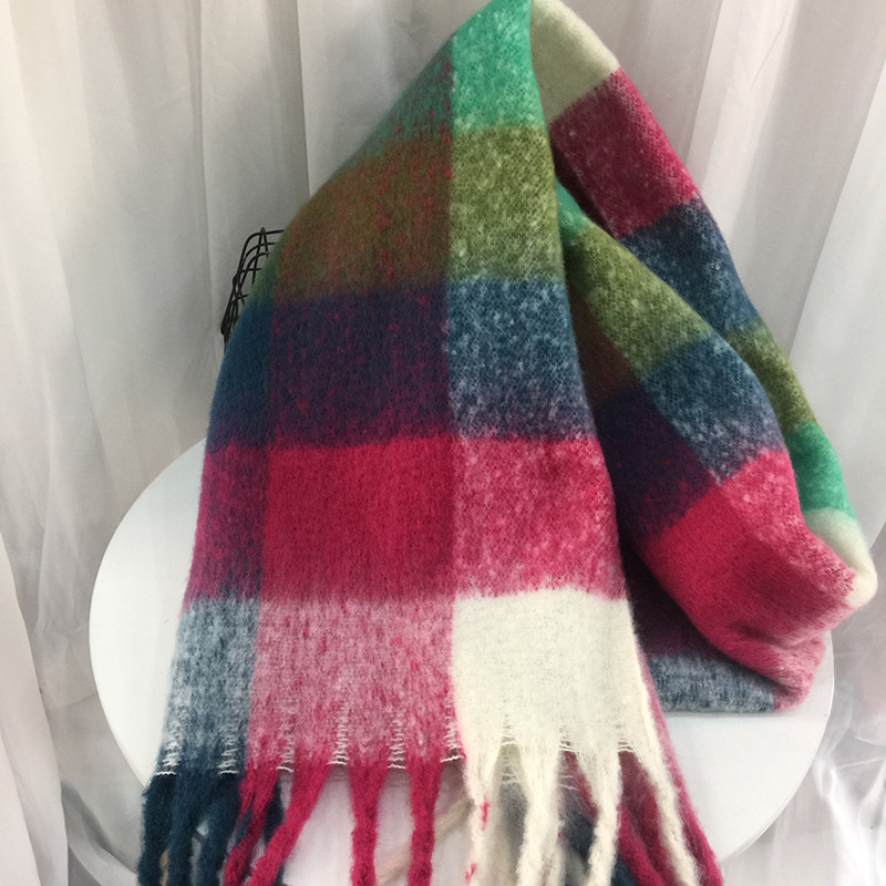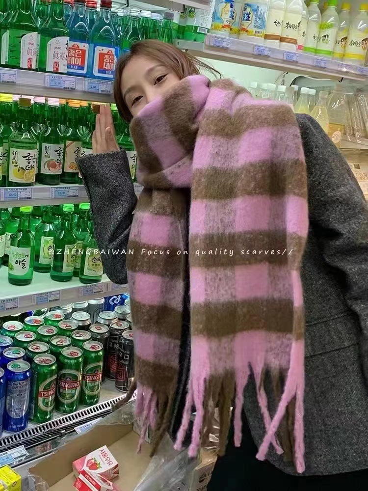 冬季围巾女 韩版ins网红同款女款流苏格子围巾中长款装饰围巾女