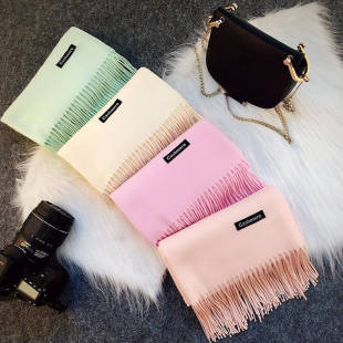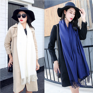 纯色围巾女冬季新款加厚保暖韩版学生百搭单色流苏仿羊绒围巾披肩