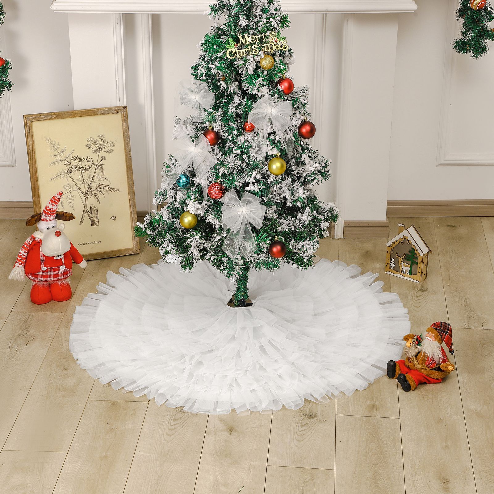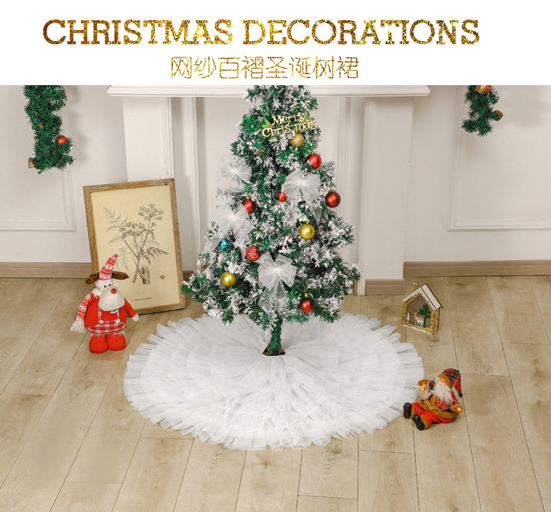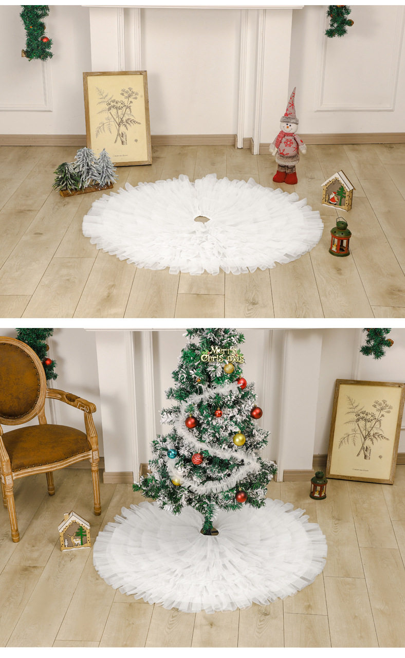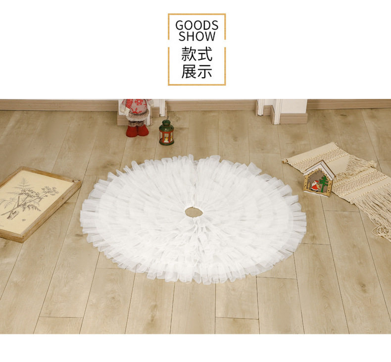 白色网纱百褶圣诞树裙毛绒纯白地毯围裙圣诞节日装饰底座树垫家用