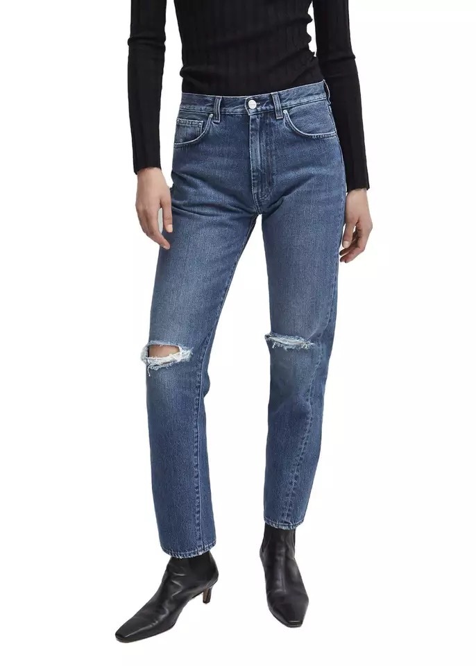 toteme牛仔裤女款直筒显瘦修身休闲扭缝缝破洞小脚裤秋季破洞南油