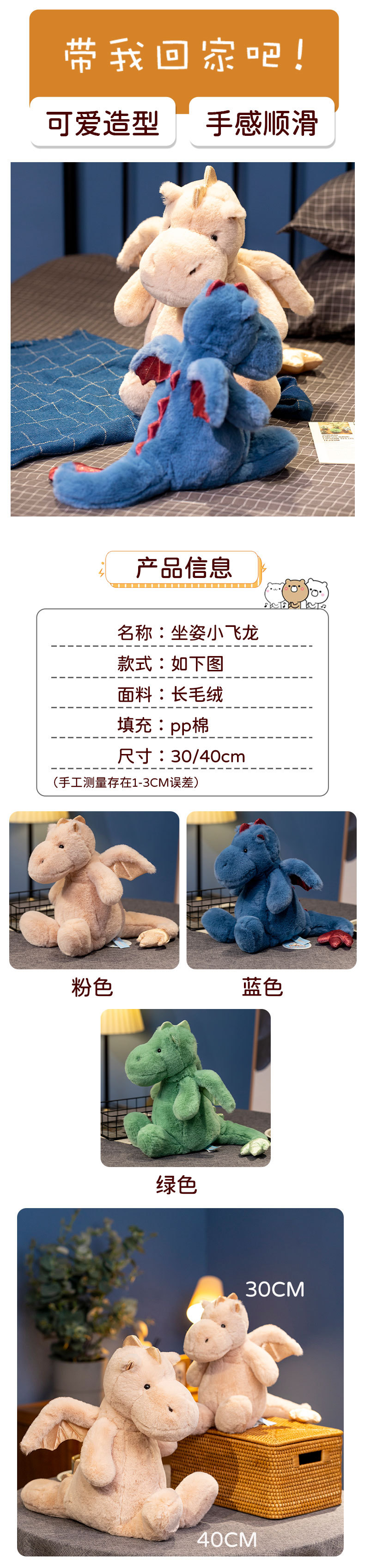 跨境热销毛绒玩具小飞龙公仔可爱恐龙公仔龙年玩偶新年礼物批发