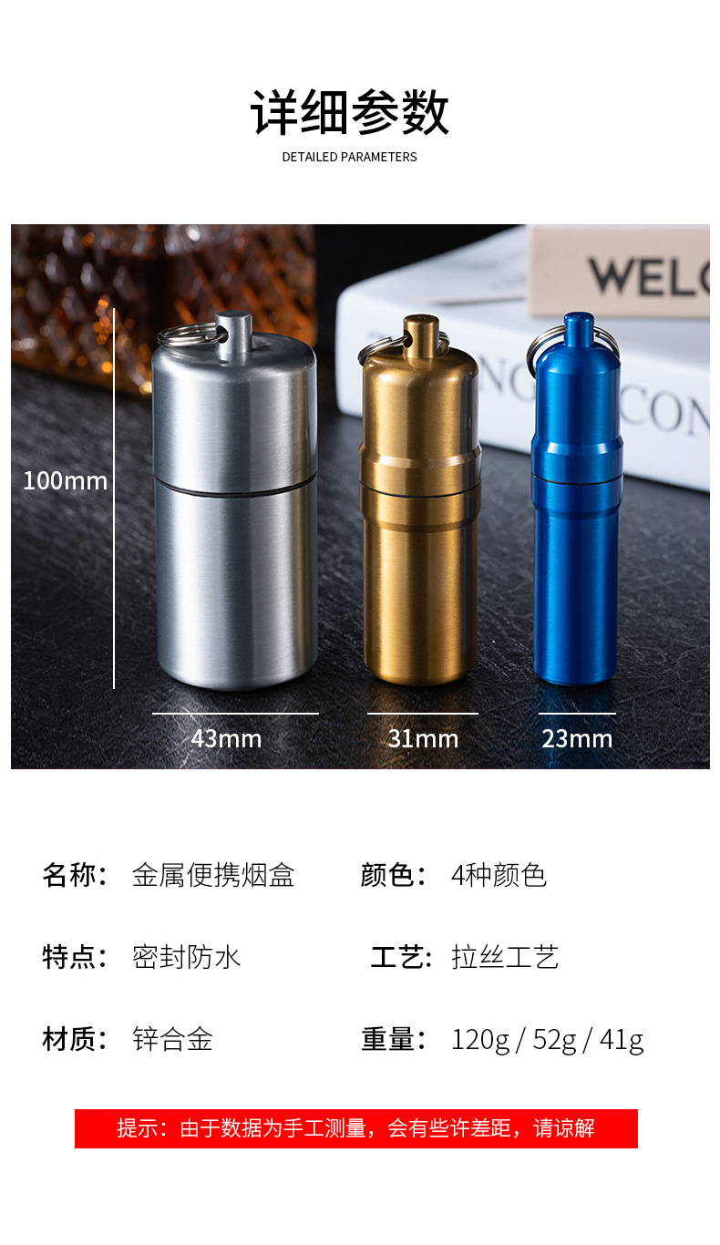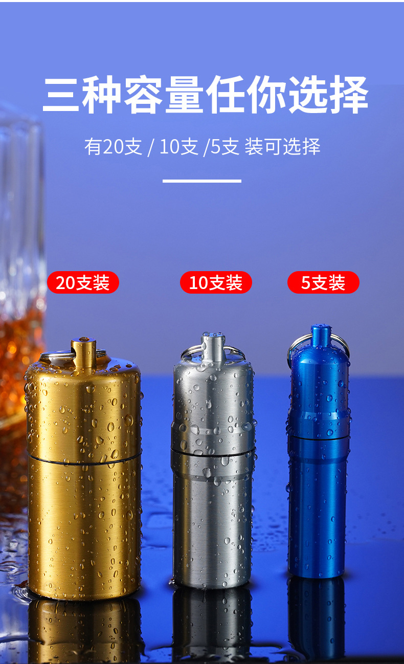 批发密封防潮金属烟罐香烟盒 防水5支10支20支装带钥匙扣烟盒跨境