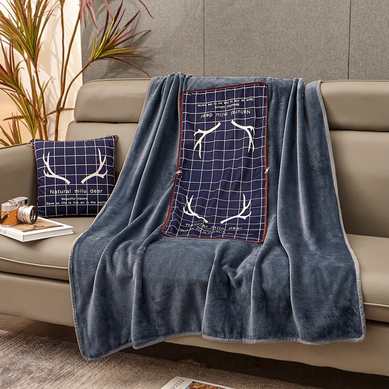 法兰绒抱枕被子两用来图来样logo车用加厚珊瑚绒汽车午睡毯子靠垫