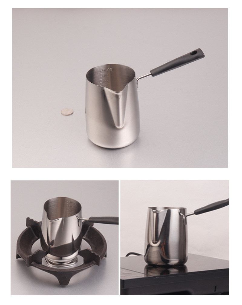 304电木长柄不锈钢尖嘴拉花杯 热奶咖啡器具拉花缸化蜡杯蜡壶