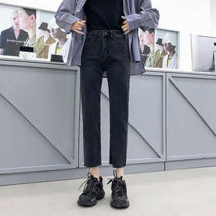 白色阔腿牛仔裤女春秋港风高腰宽松显瘦垂感百搭直筒加长拖地裤子