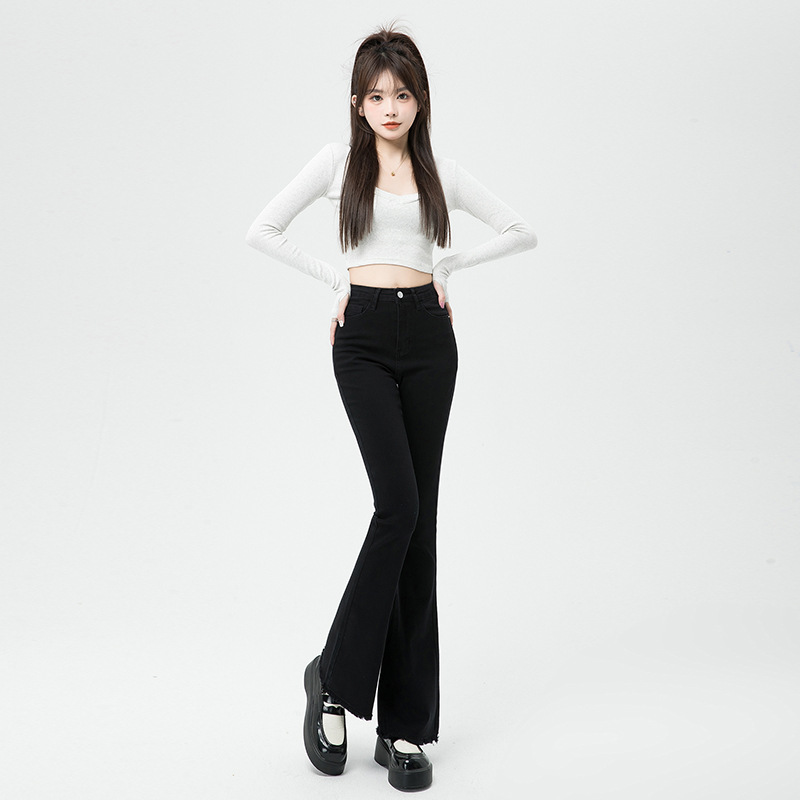 现货美式辣妹百搭修身显瘦提臀高腰弹力喇叭牛仔裤女潮i&长裤加长