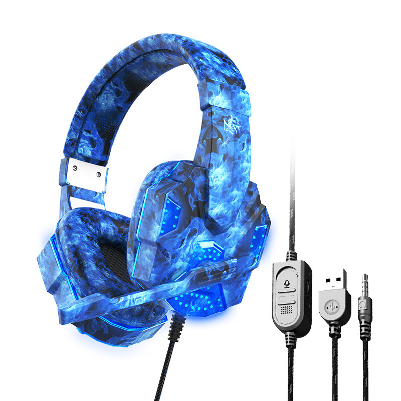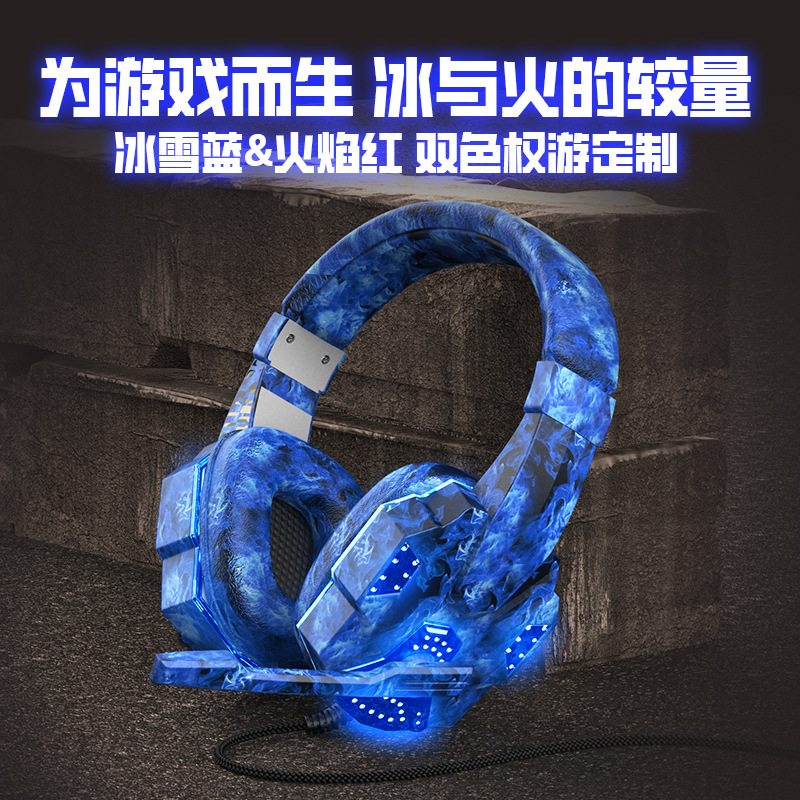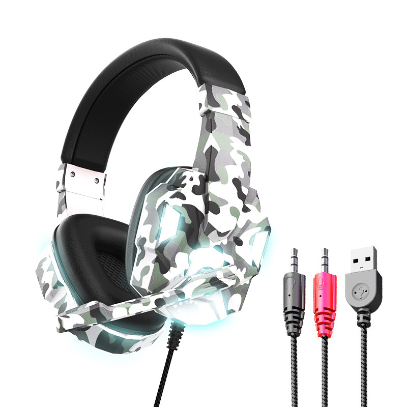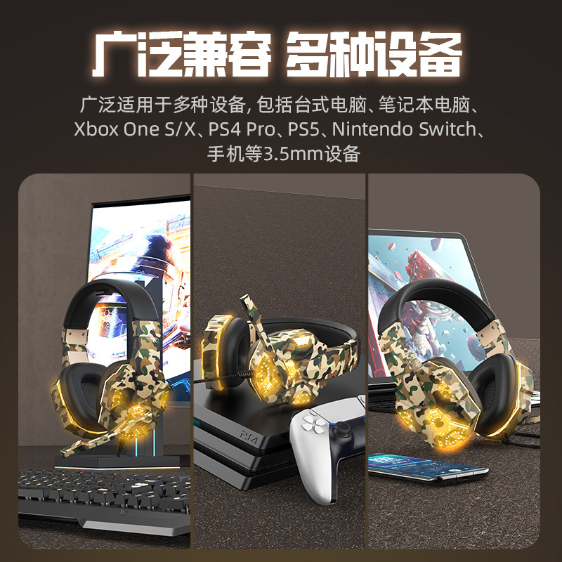 跨境私模迷彩发光耳机游戏头戴式电脑笔记本耳机有线电竞吃鸡耳麦