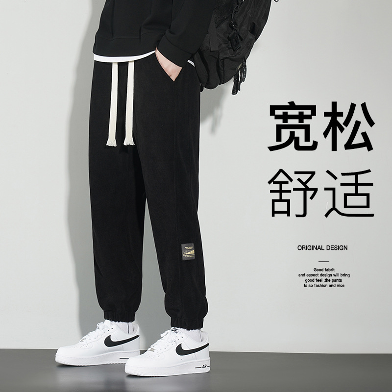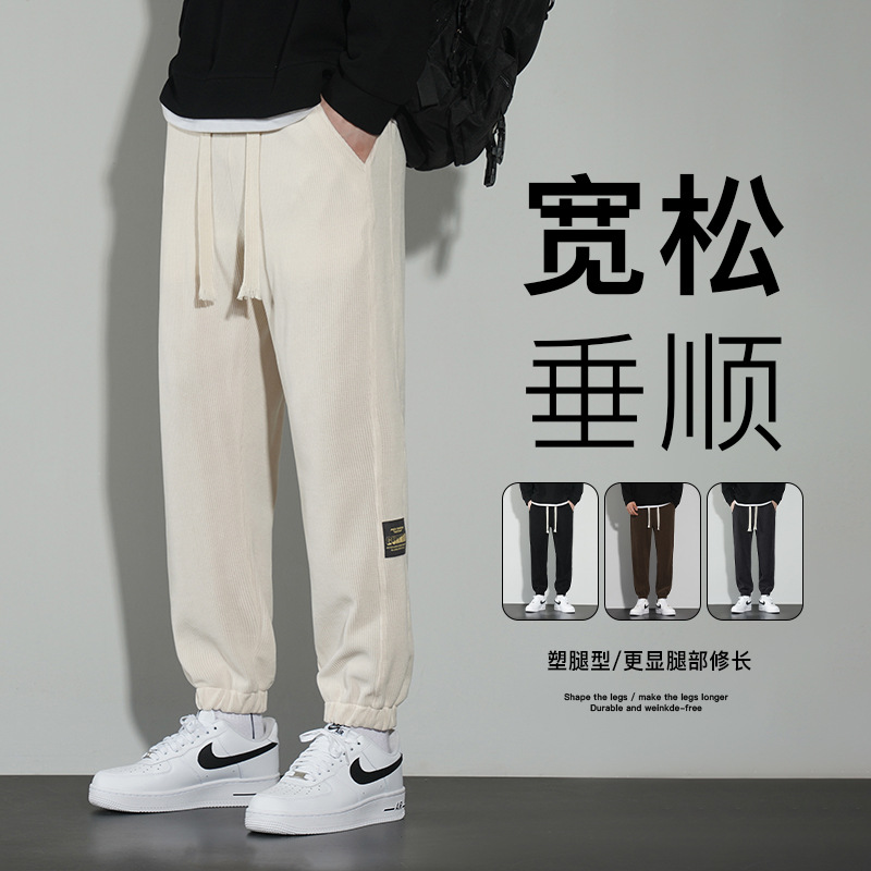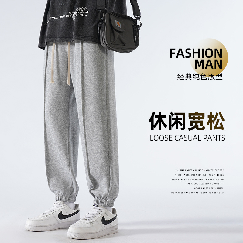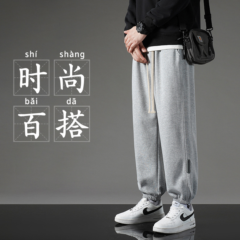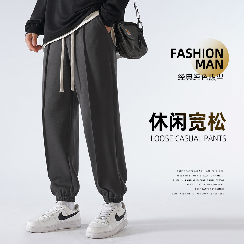 秋季裤子男新款春秋直筒卫裤阔腿休闲长裤束脚宽松男裤潮牌运动裤