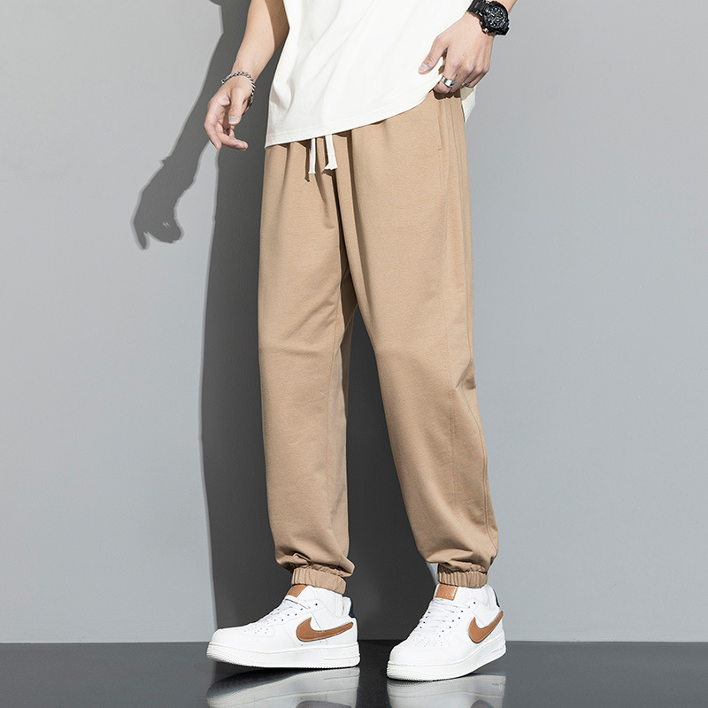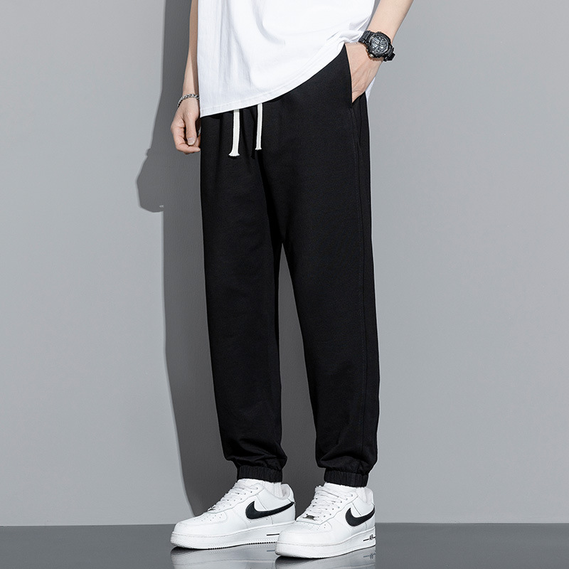 夏季薄款纯棉裤子男士休闲长裤男款韩版束脚灰色男生运动裤卫裤男