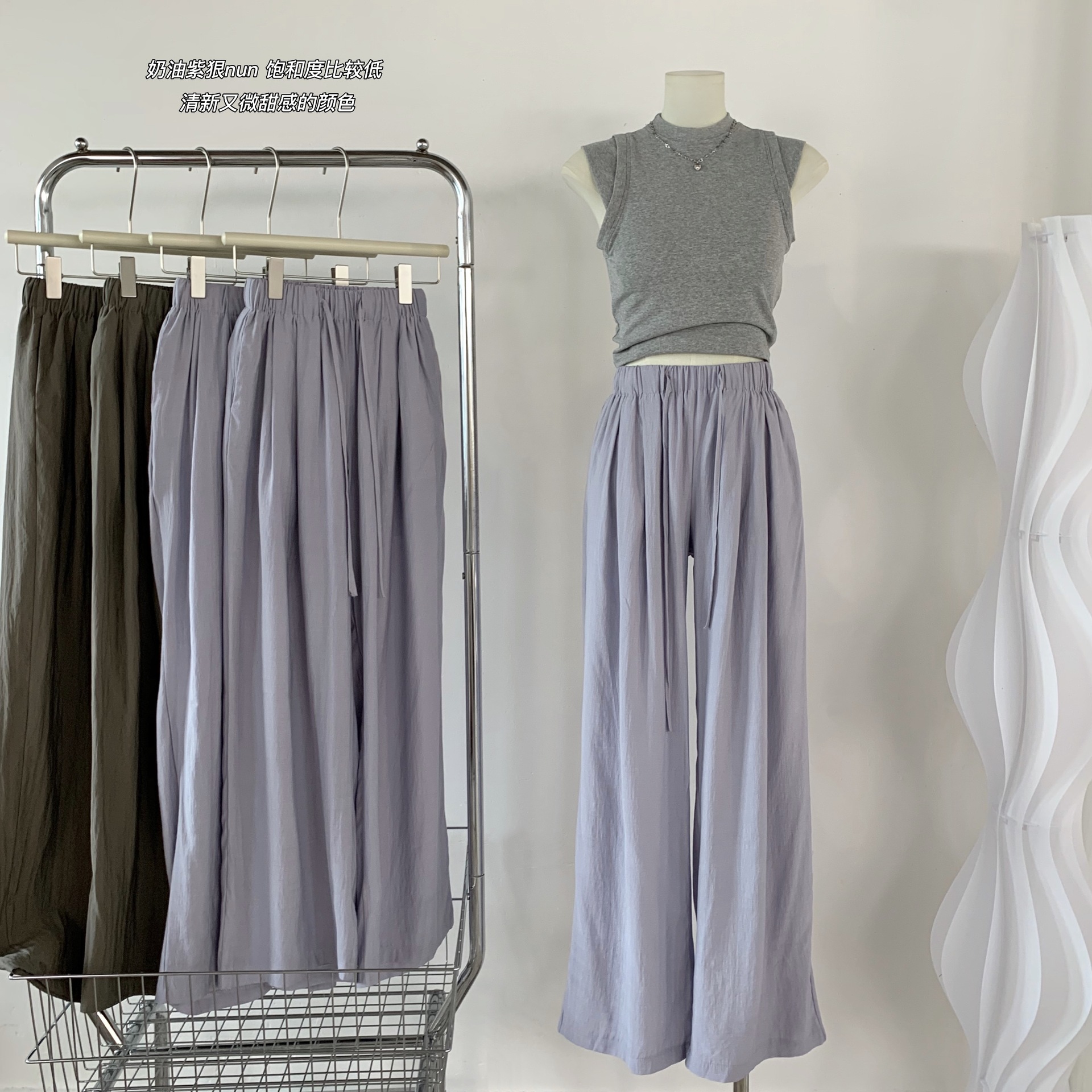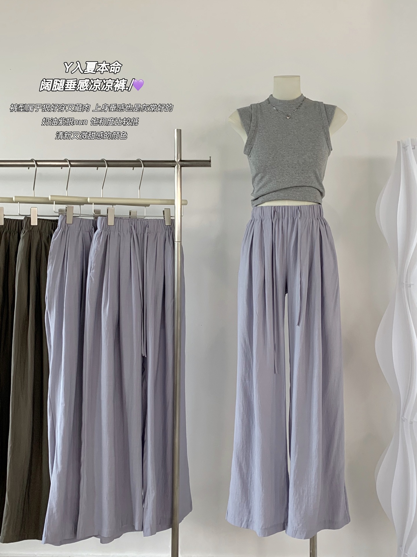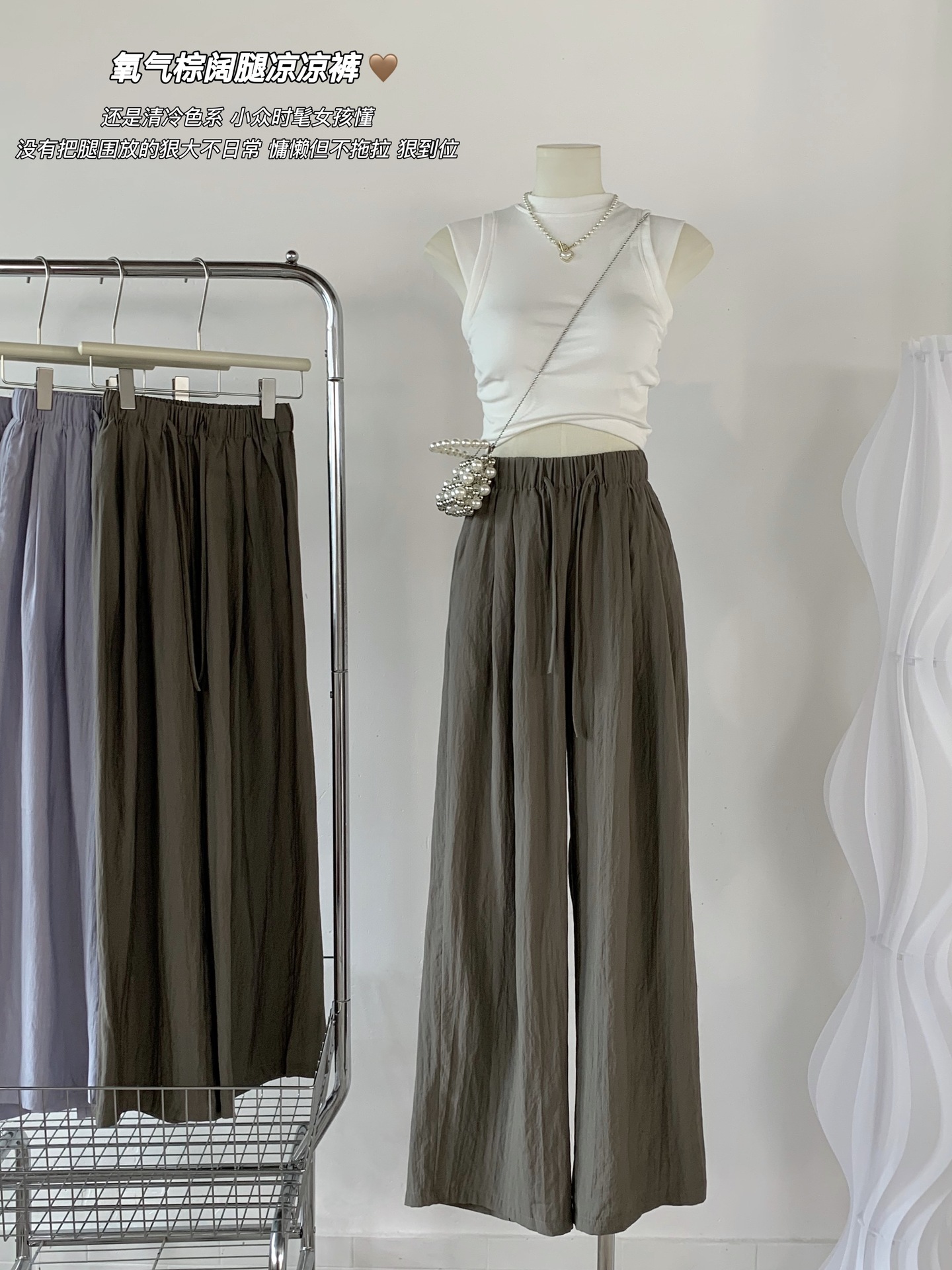 入夏本命天丝阔腿裤女夏薄款小个子松紧高腰垂感凉凉裤女小众舒适