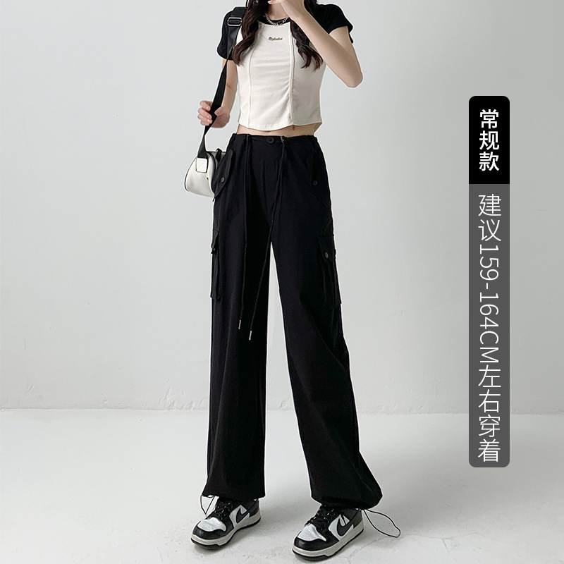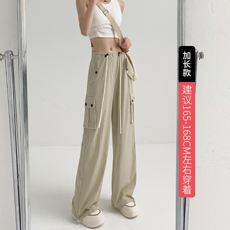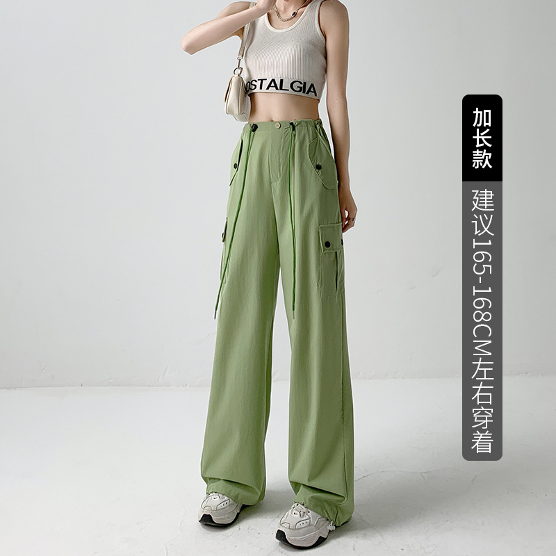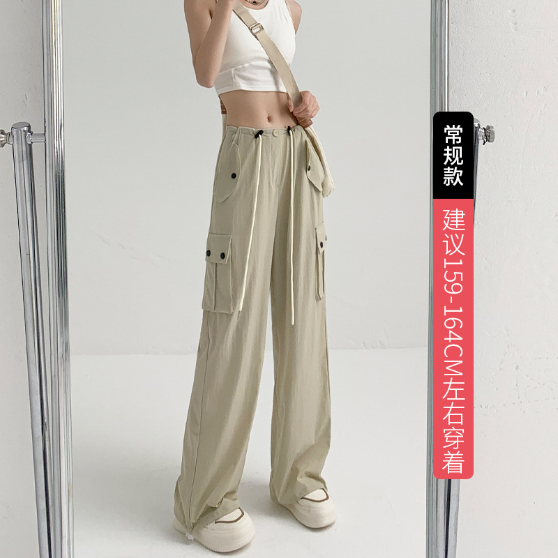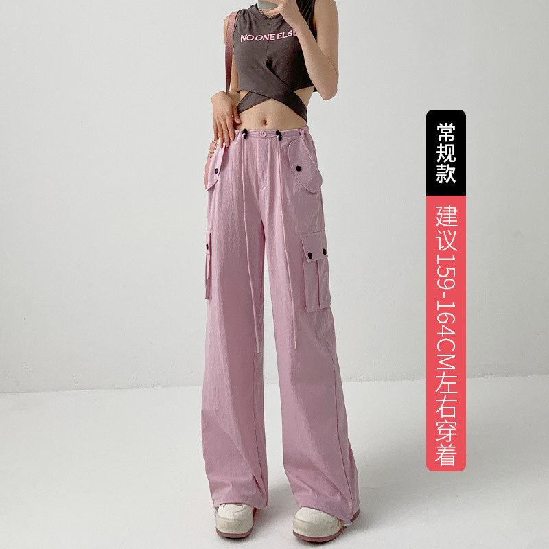 多巴胺穿搭工装裤辣妹裤子女夏季高腰阔腿裤宽松休闲速干运动裤