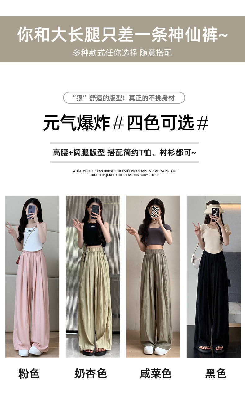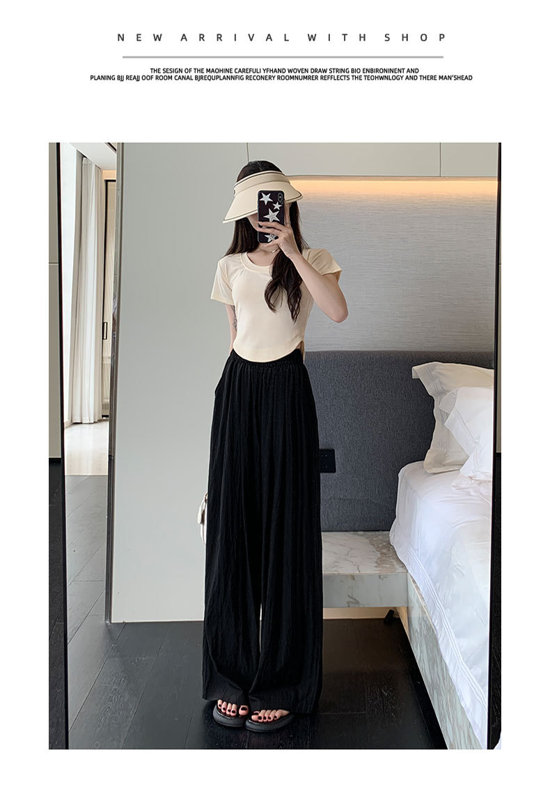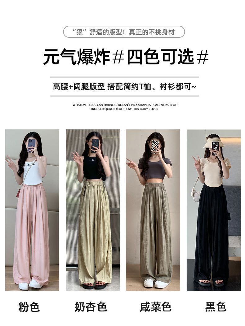 冰丝阔腿裤子女夏季薄款高腰垂感休闲日系慵懒山本裤肌理感直筒裤
