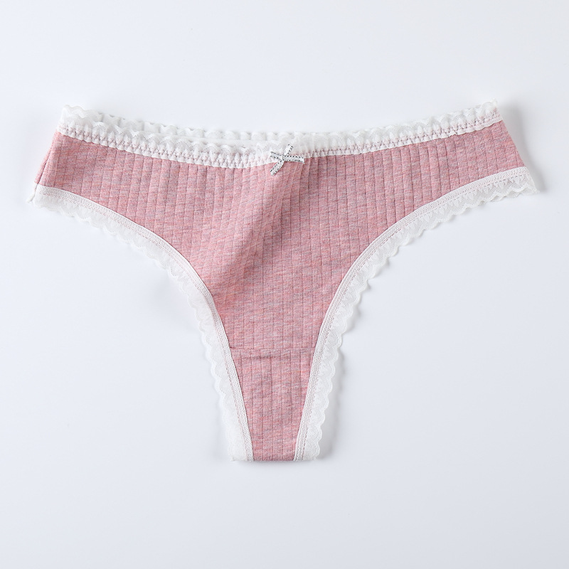 新款彩棉女士丁字裤女 桑蚕丝内裤女性感蕾丝情趣无痕大码T裤