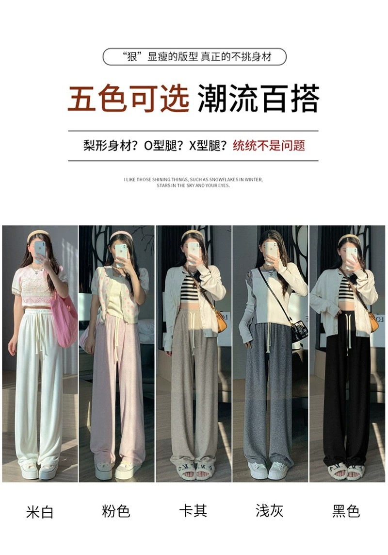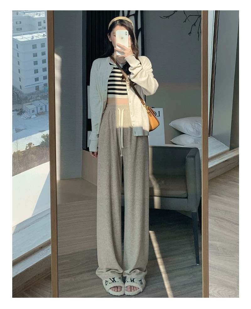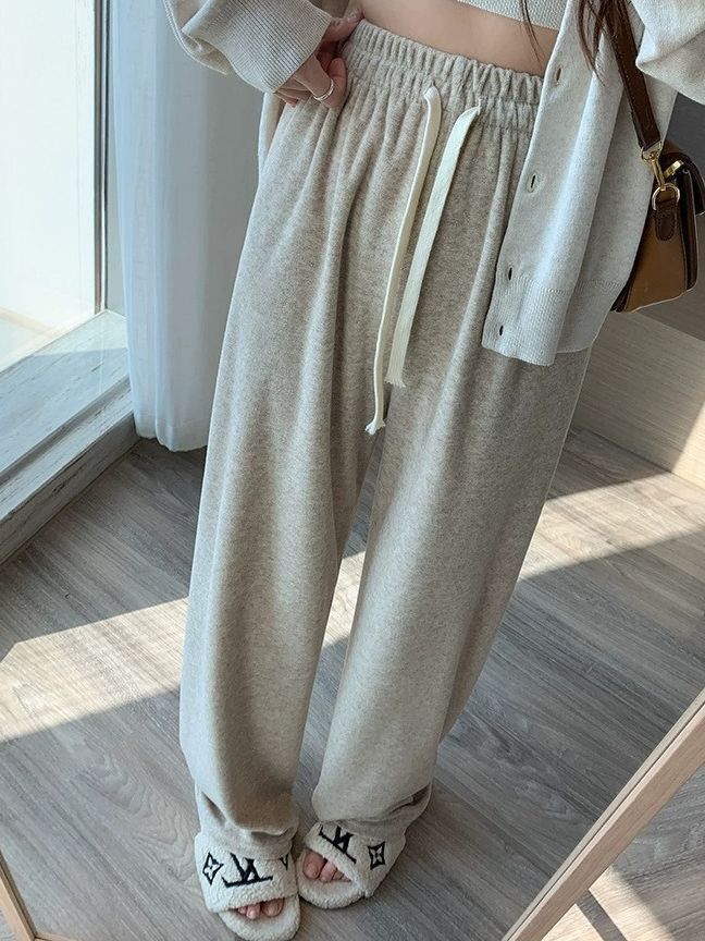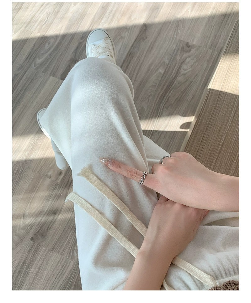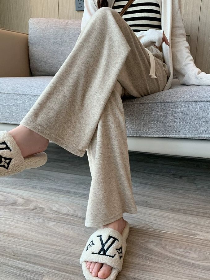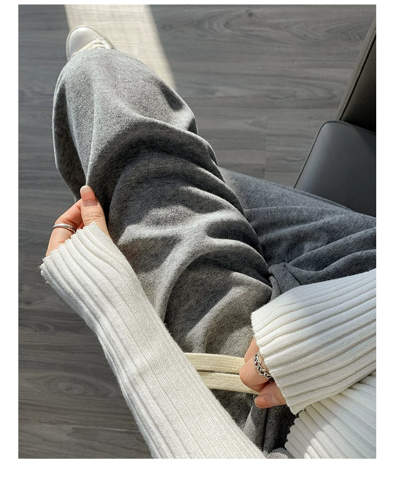 奶白色毛巾羊绒阔腿裤女春秋冬休闲直筒拖地窄版软糯垂感针织裤女