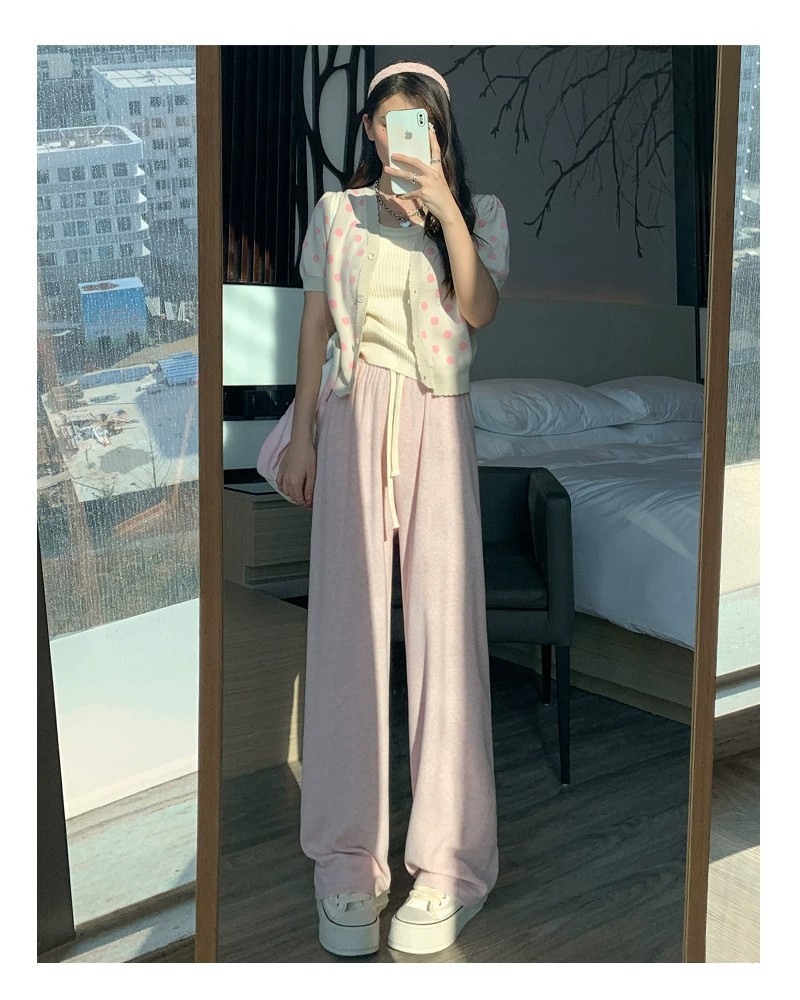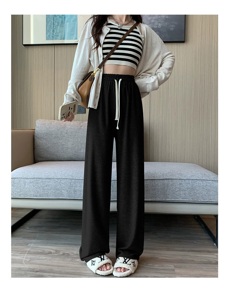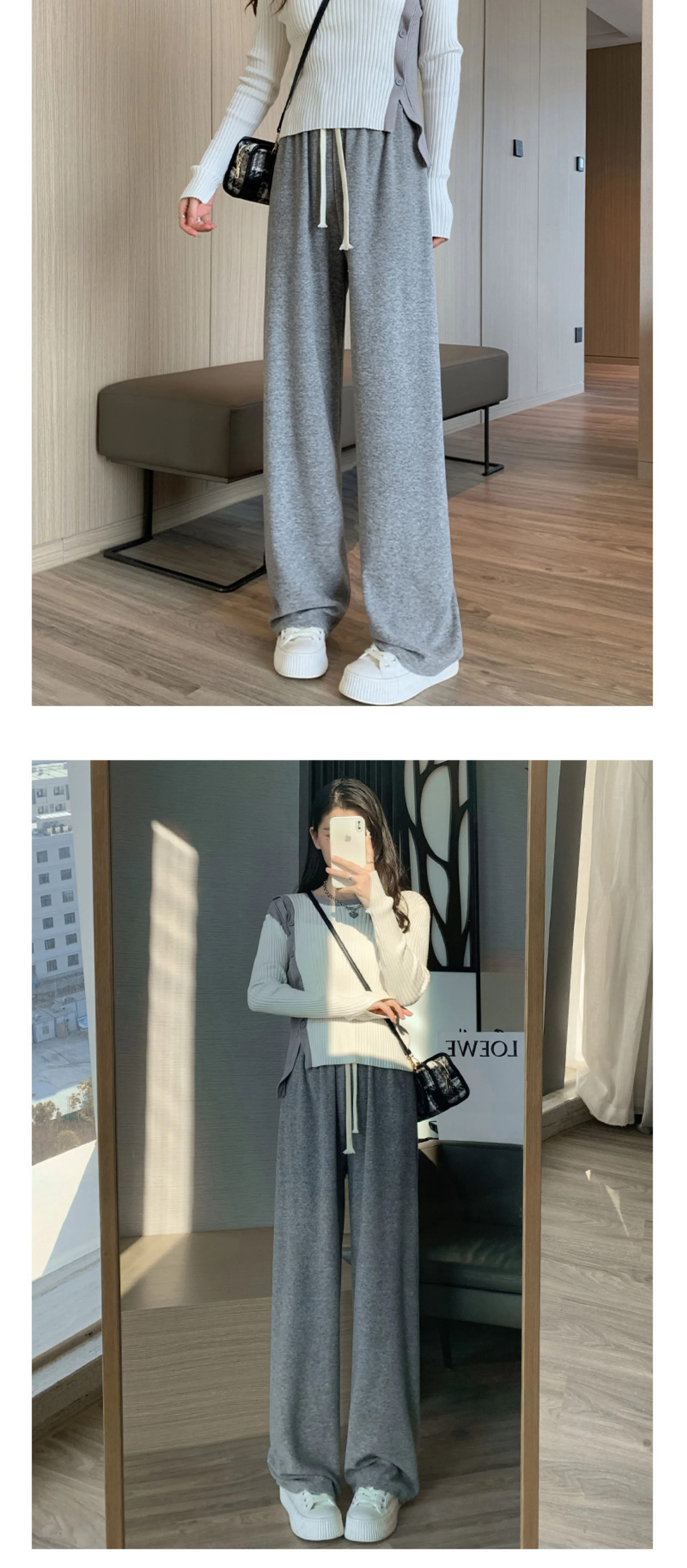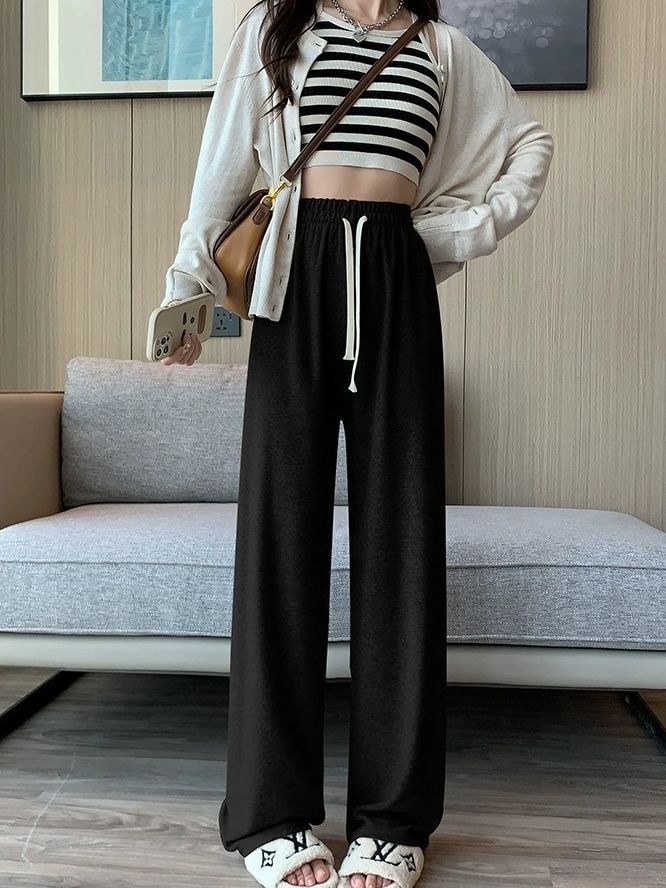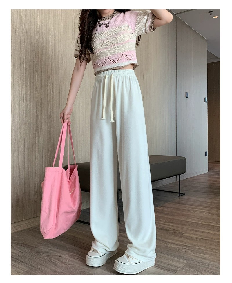 奶白色毛巾羊绒阔腿裤女春秋冬休闲直筒拖地窄版软糯垂感针织裤女