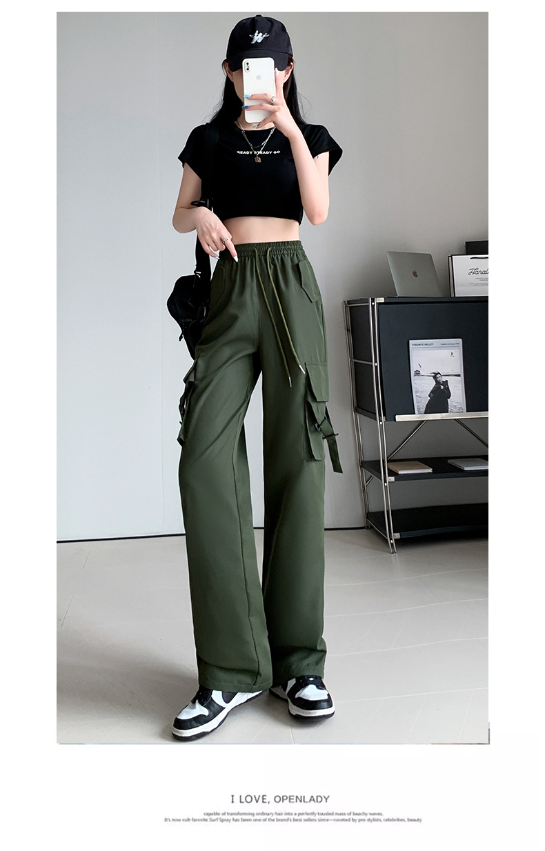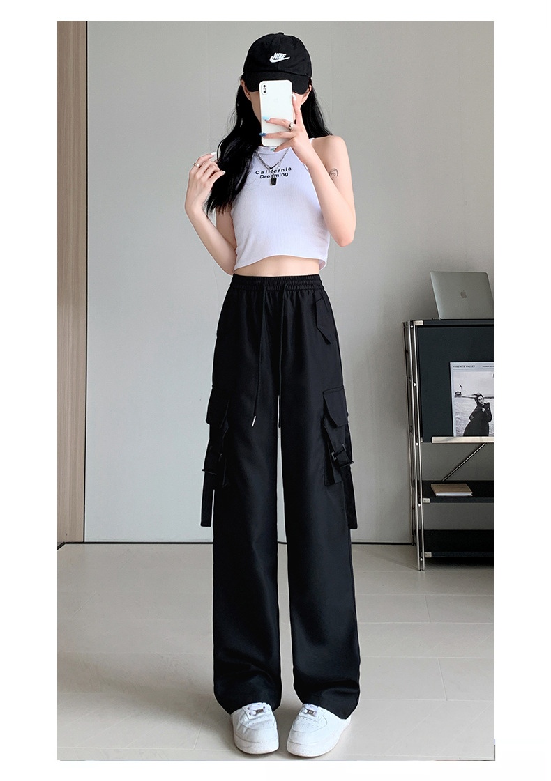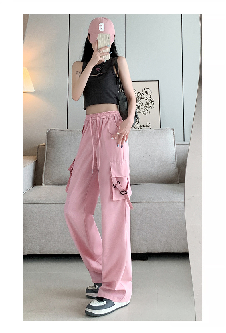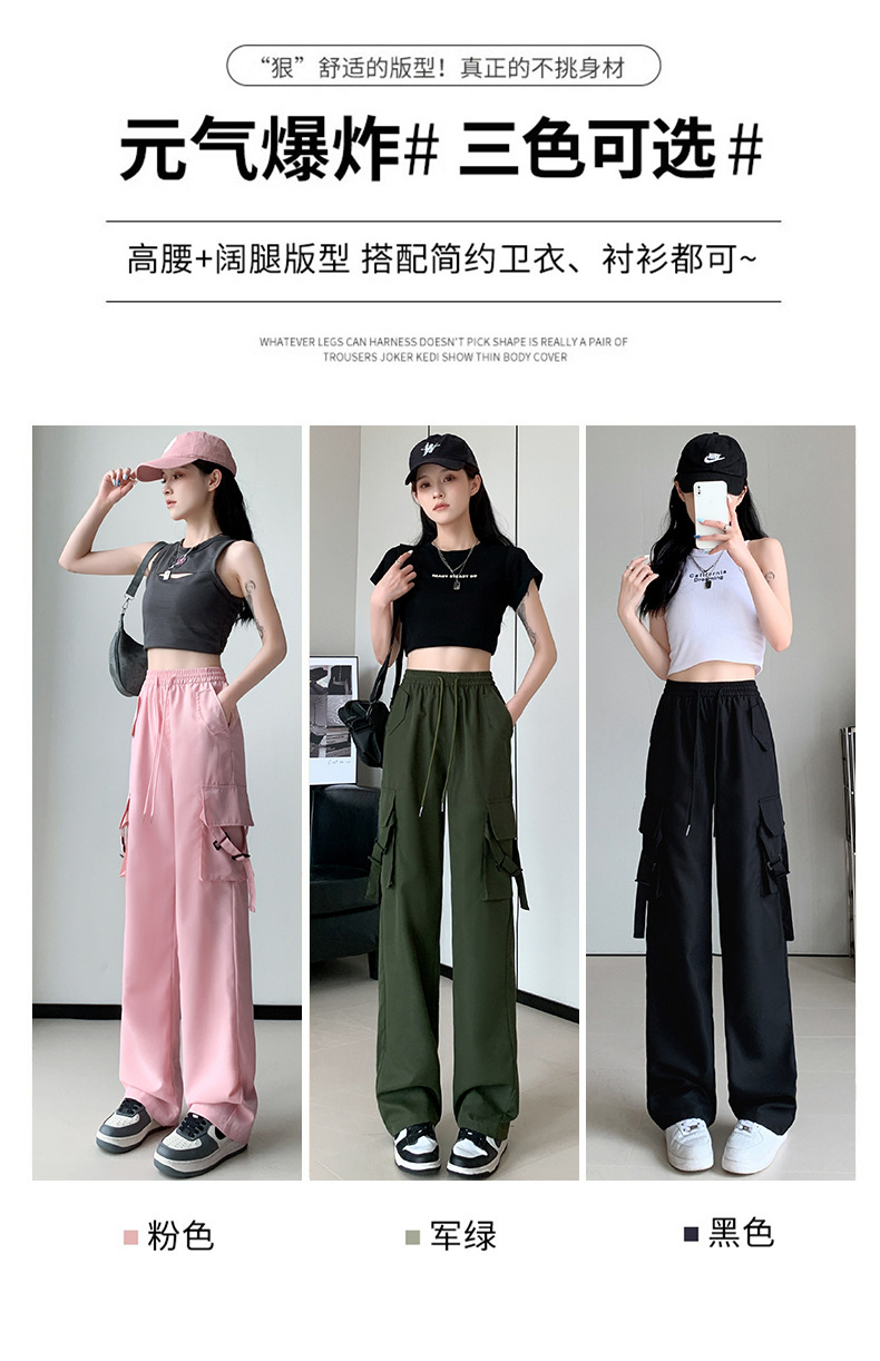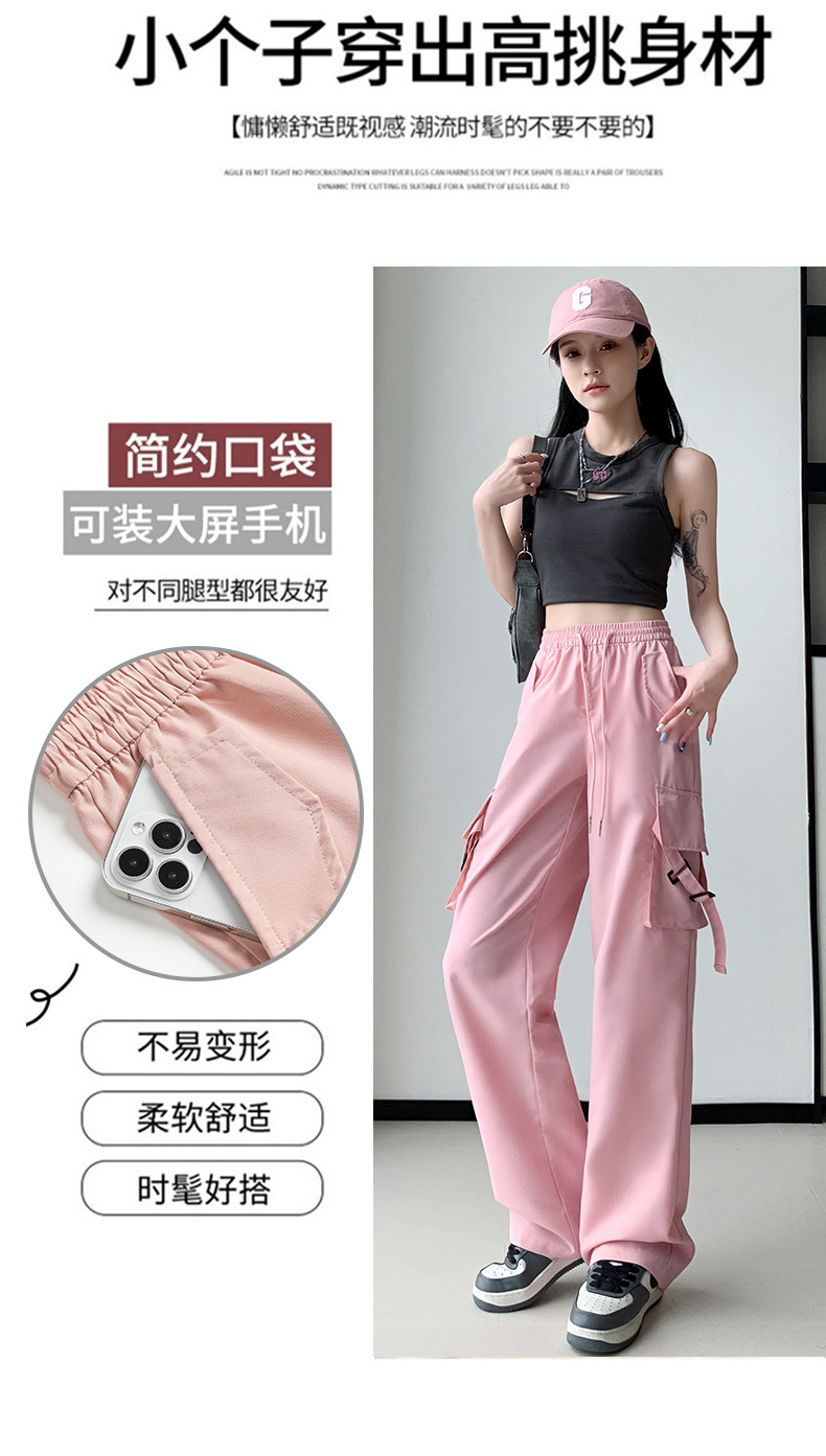 工装裤女夏季薄款美式设计感宽松垂感高腰显瘦直筒阔腿休闲裤子潮