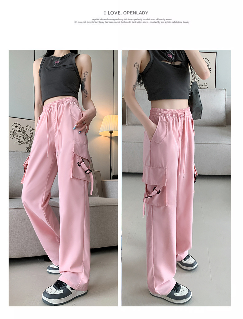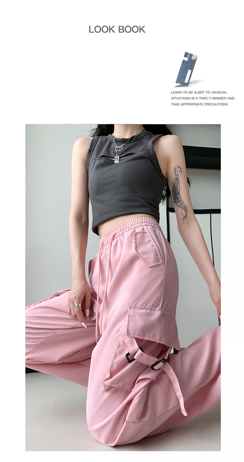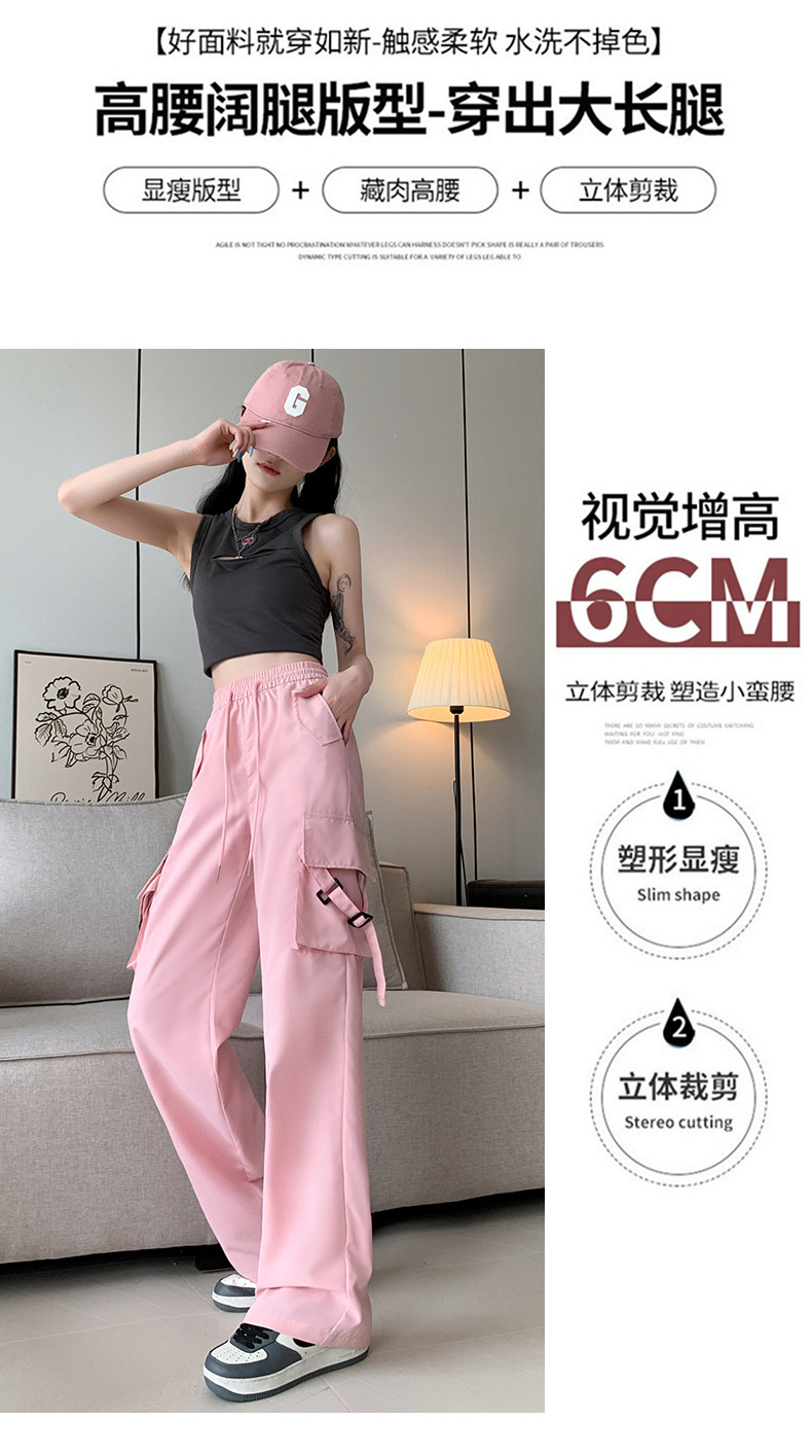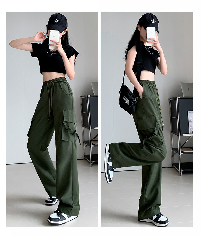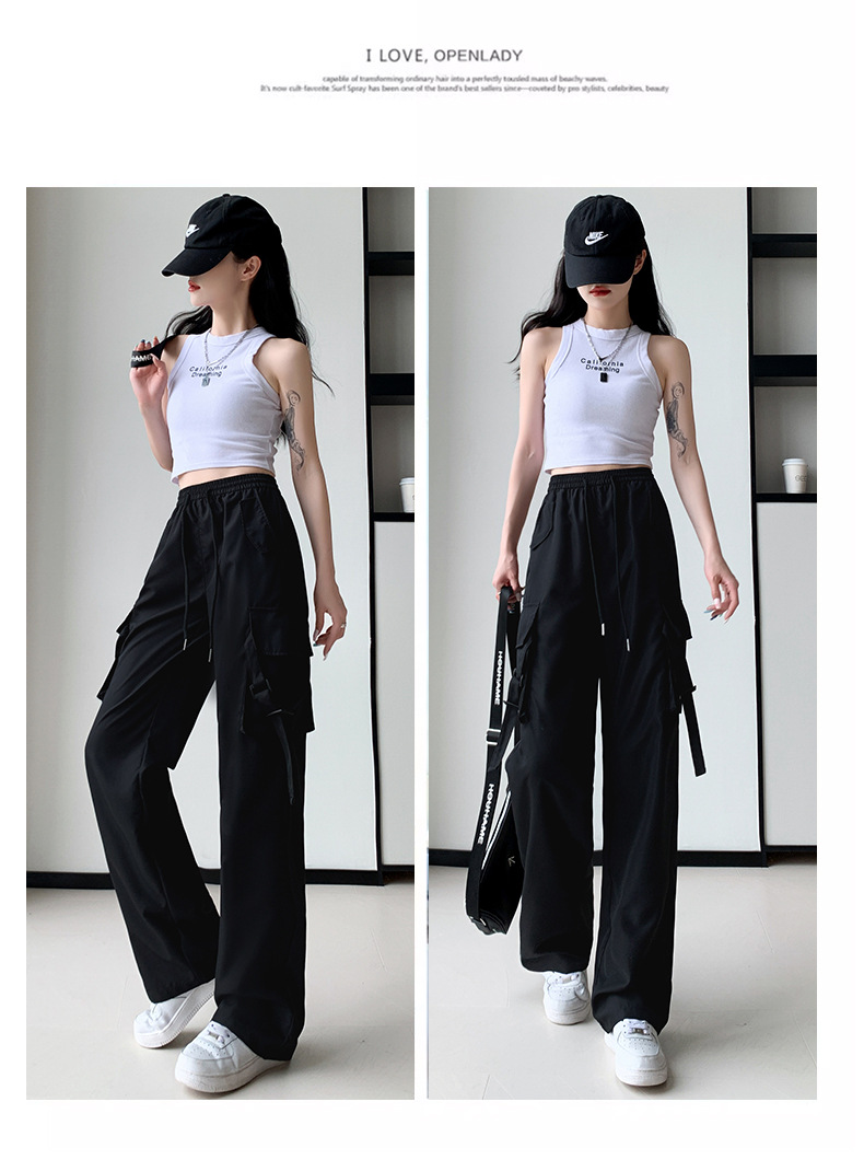 工装裤女夏季薄款美式设计感宽松垂感高腰显瘦直筒阔腿休闲裤子潮