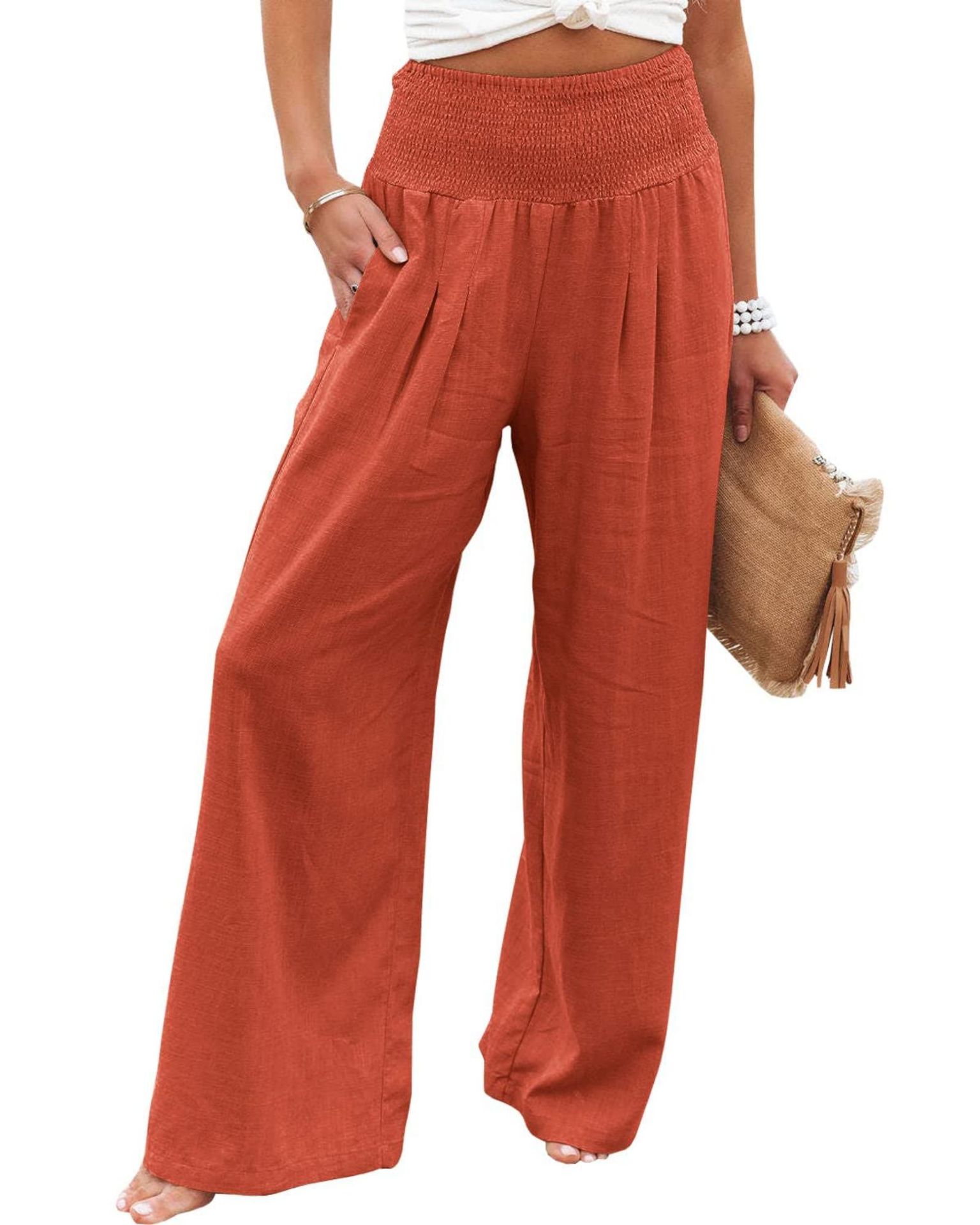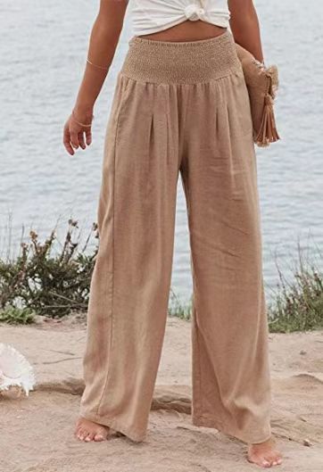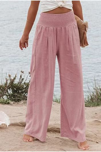 现货!2023欧美春夏季速卖通 亚马逊 休闲阔腿棉麻爆款宽松长裤女