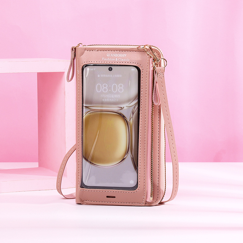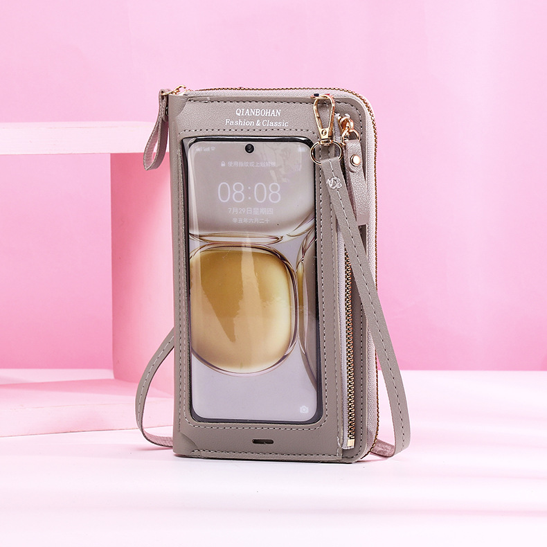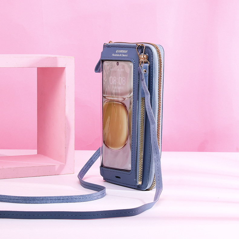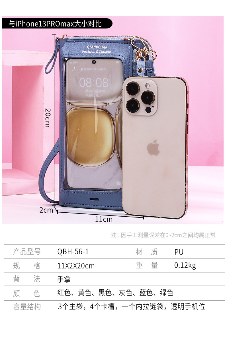 新款可触屏手机包女防盗多功能钱包百搭透明手机零钱包斜挎手拿包