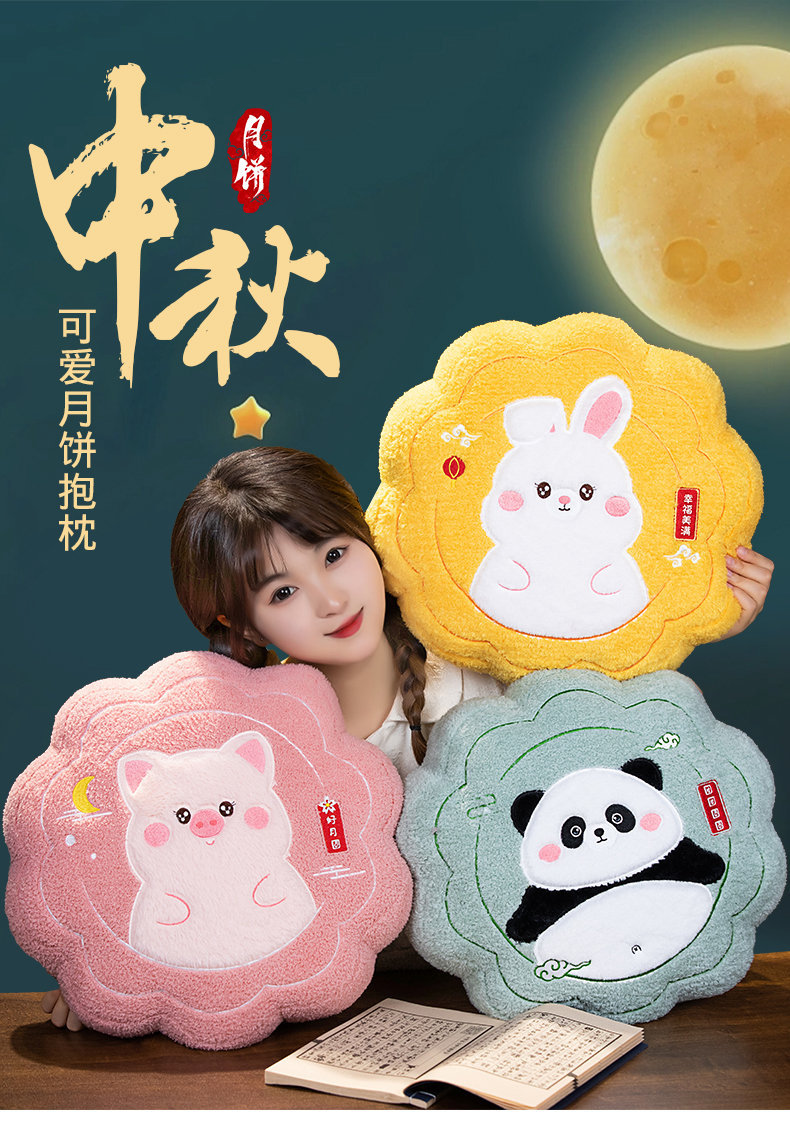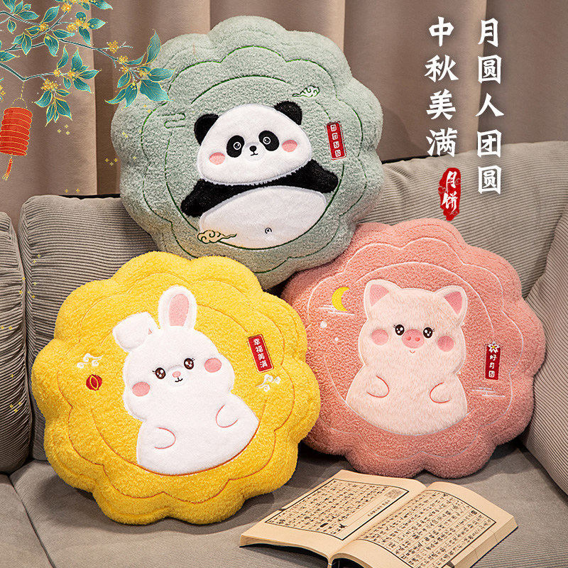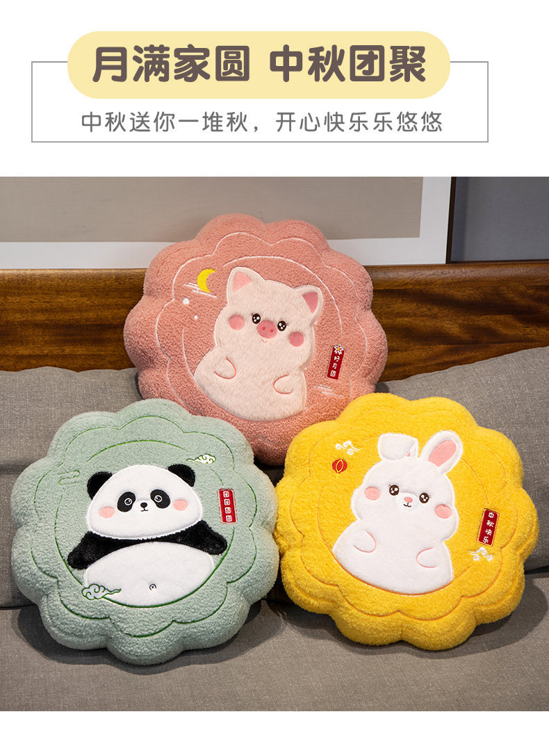 2023中秋节动物月饼毛绒玩具公仔玩偶抱枕靠枕送同事中秋礼物批发