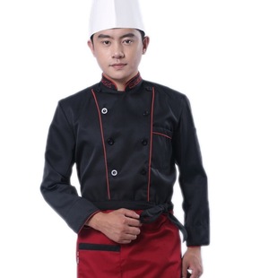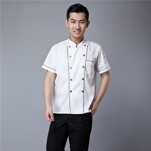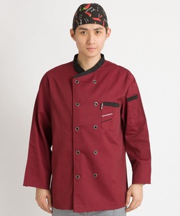 厨师服长袖白色制服工作服紫红边蓝边2023春夏新款印绣字一件代发