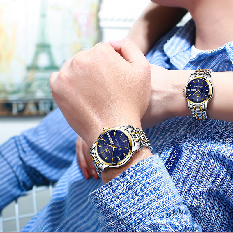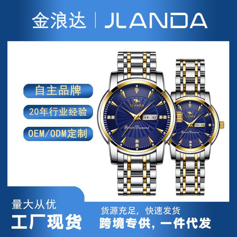 金浪达高档正品男女手表夜光防水钢带男士石英表抖音快手情侣腕表