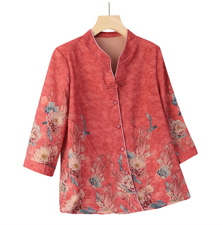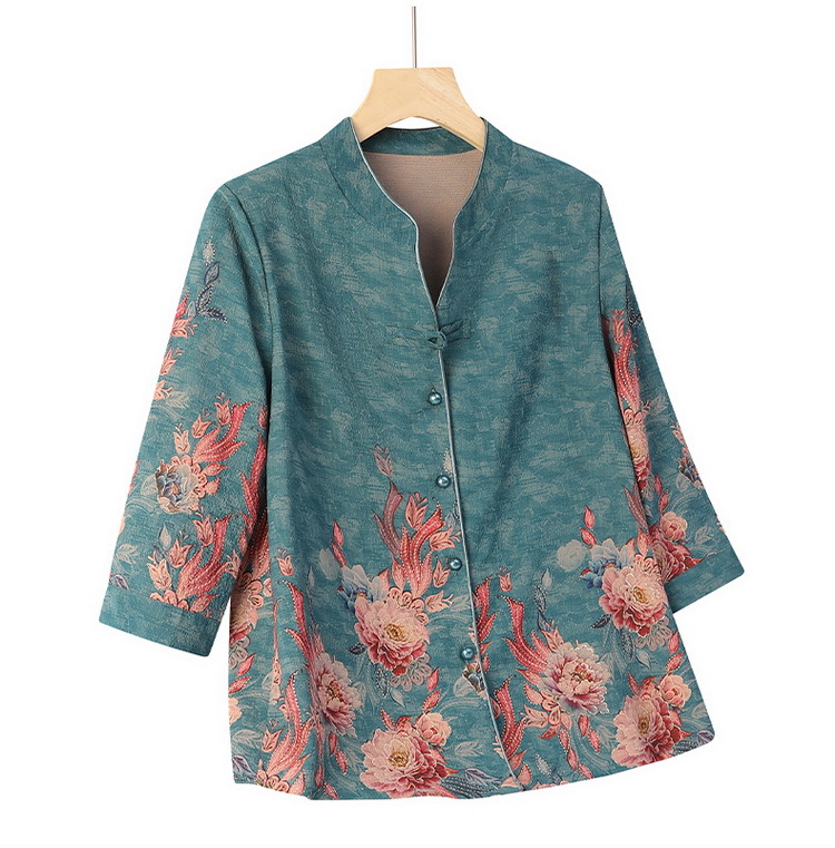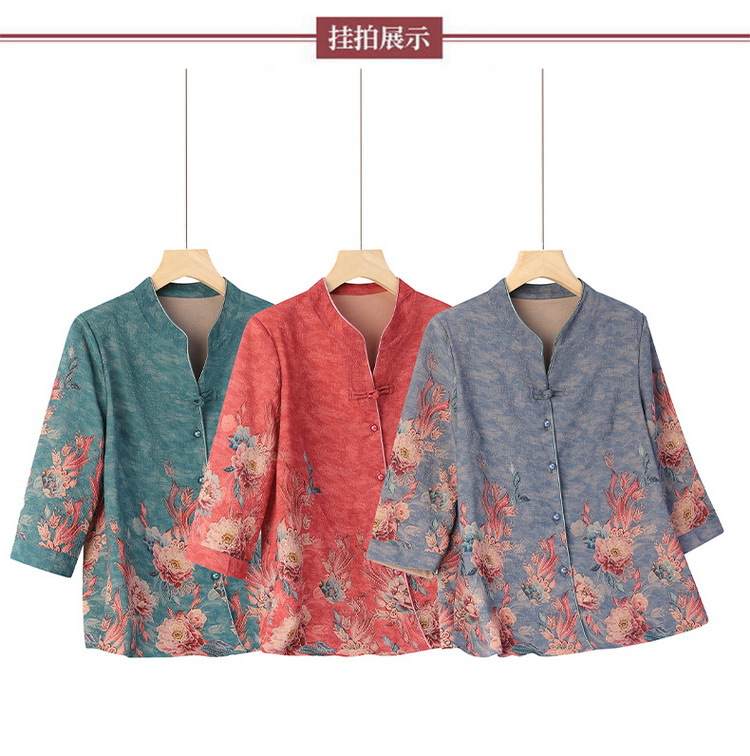 奶奶装洋气夏装衬衫中老年人女七分袖70岁妈妈上衣服薄老太太衬衣