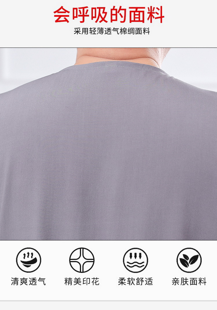中老年男士爸爸夏季开衫短袖短裤棉绸套装爷爷装人造棉家居服睡衣