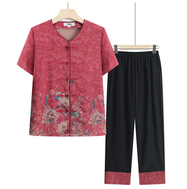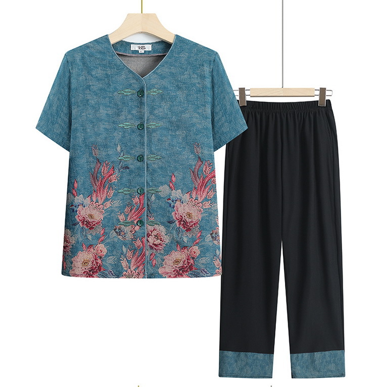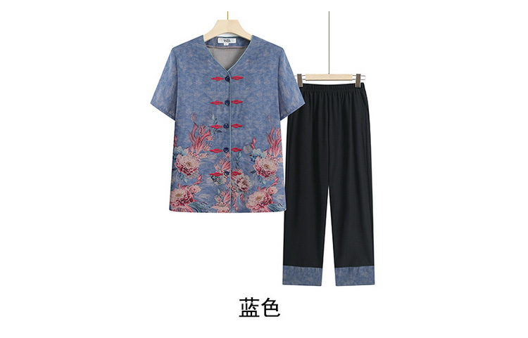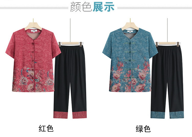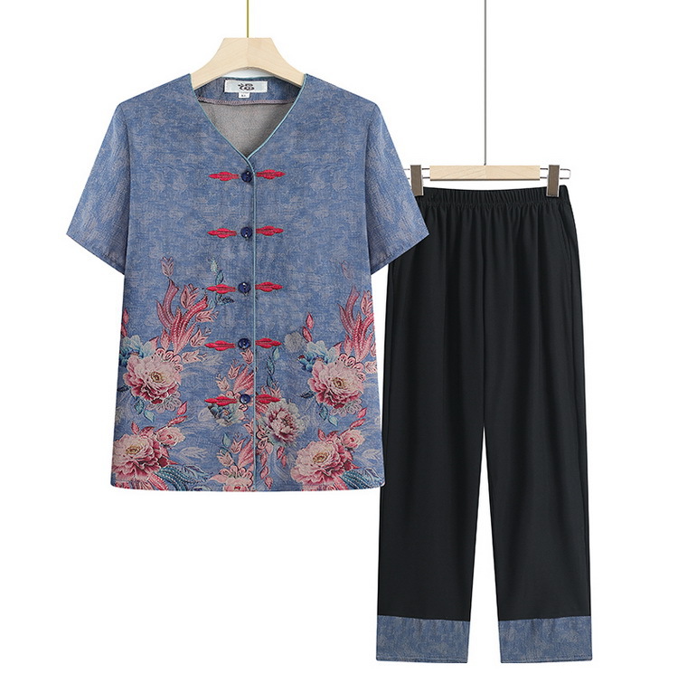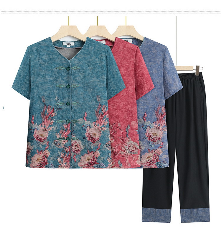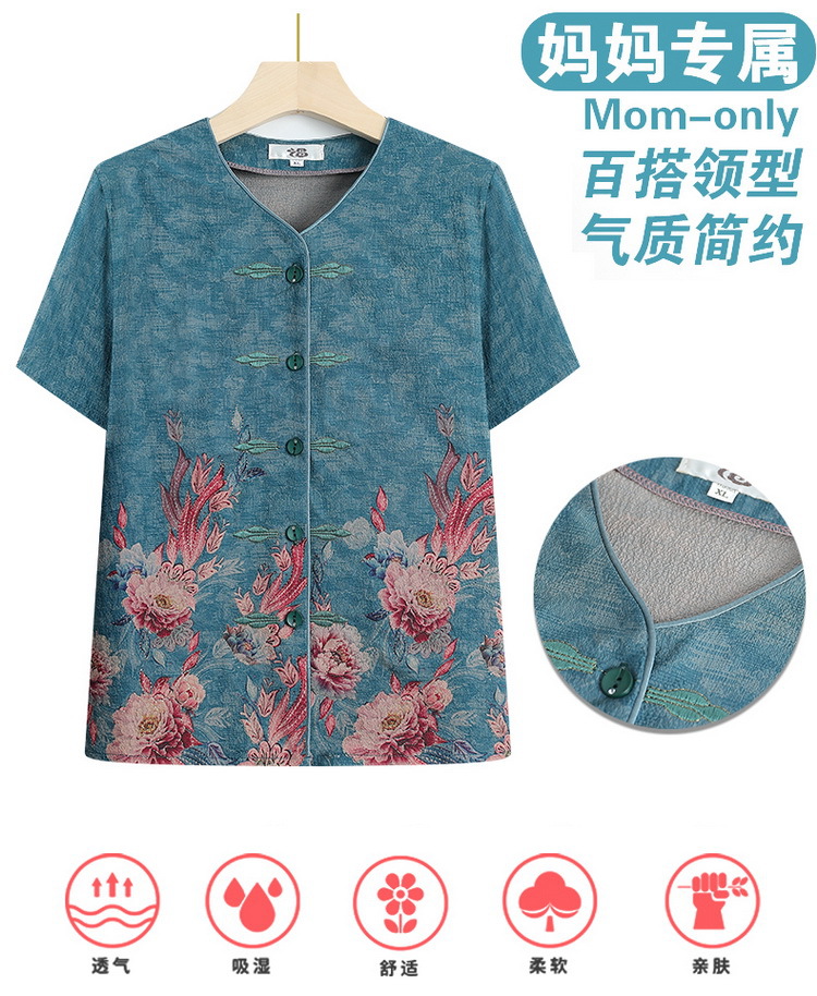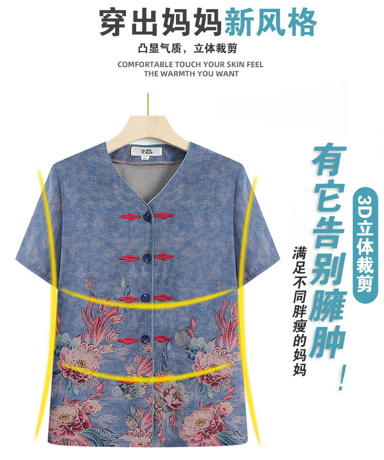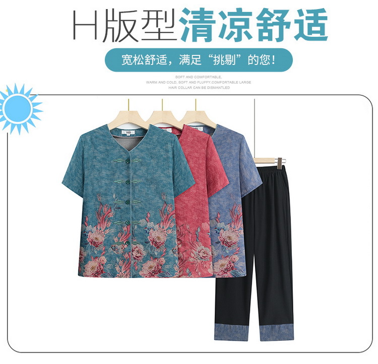 奶奶夏装短袖衬衫70岁老太太薄款时尚两件套优雅妈妈洋气衬衣套装