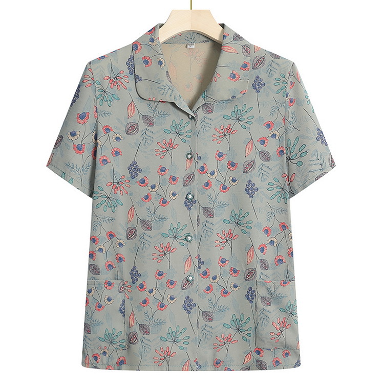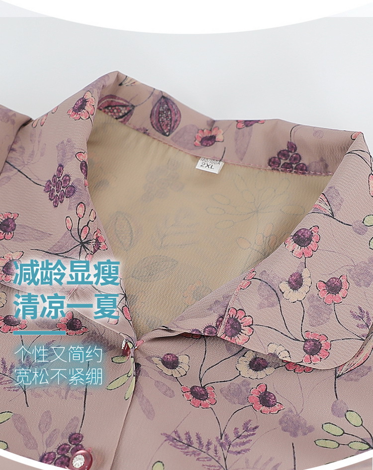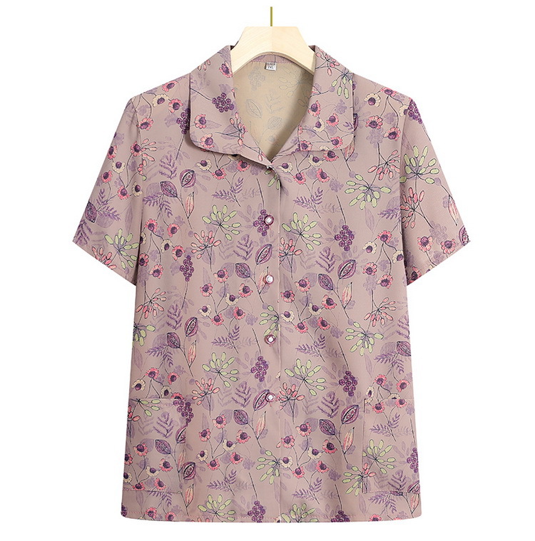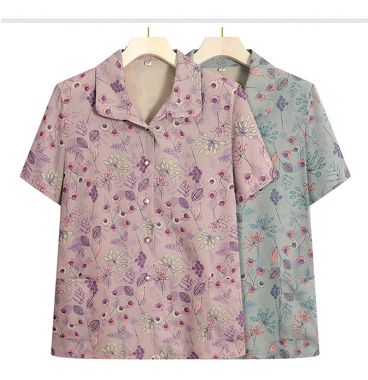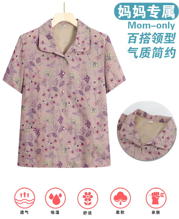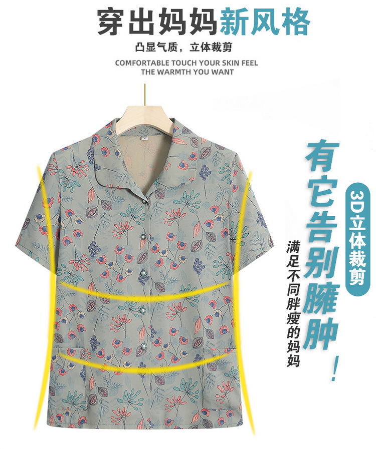 中老年人夏装女奶奶装短袖翻领衬衣妈妈装雪纺衬衫老太太夏季上衣