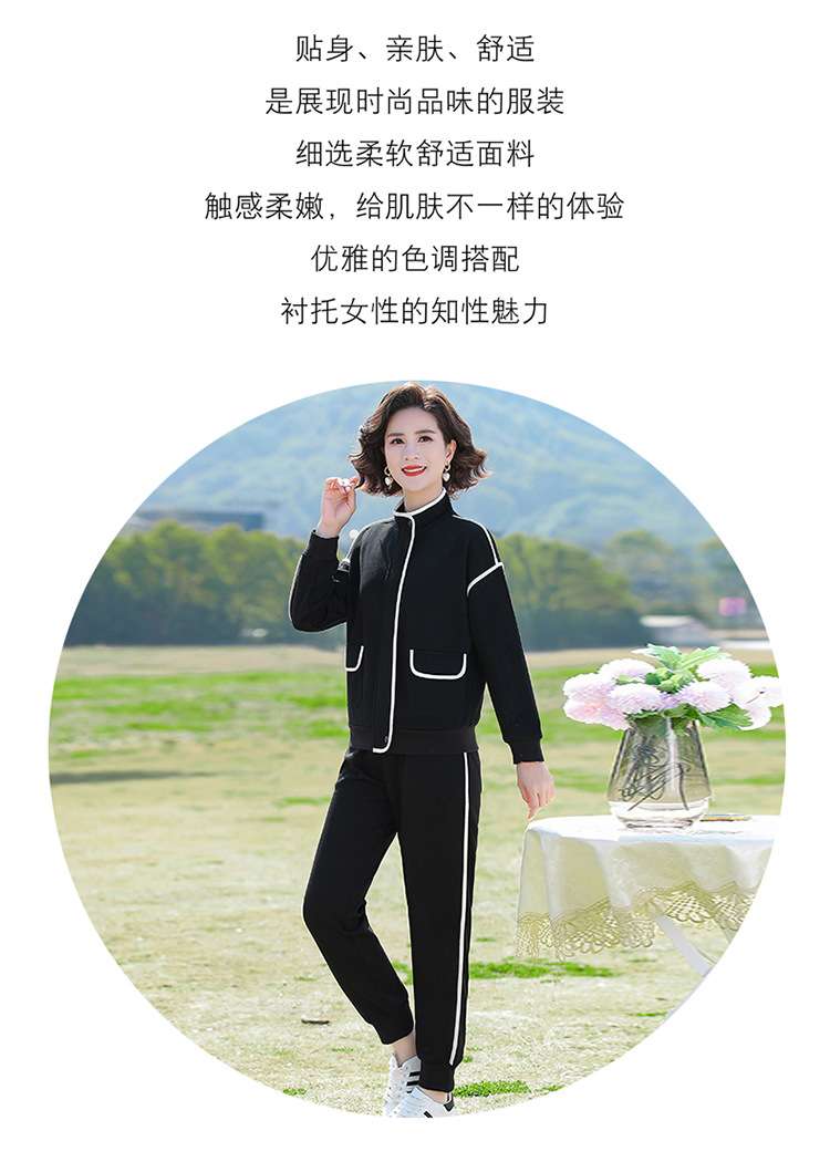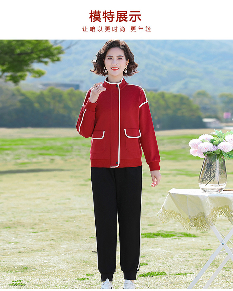 妈妈运动服套装春秋季2023新款中老年女士春装卫衣外套休闲两件套