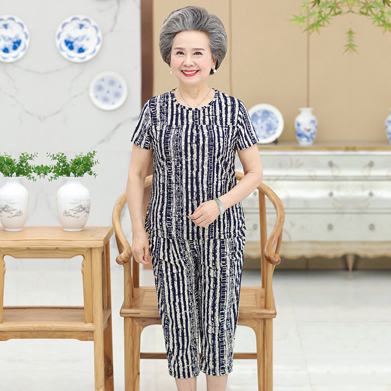 奶奶装夏装短袖套装60-70岁中老年人女装夏季老人妈妈冰丝两件套